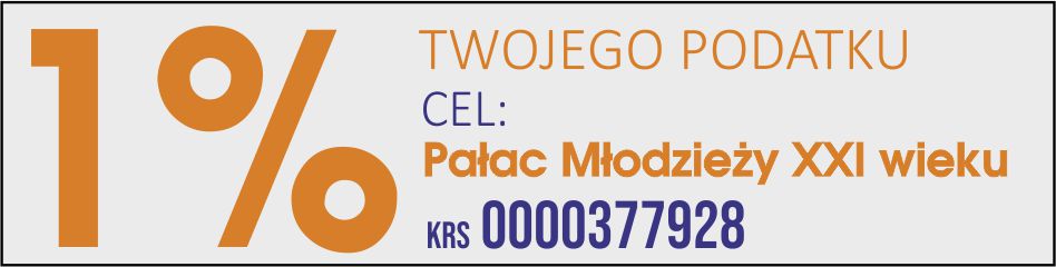 Chcemy by była nowoczesna, pasjonująca i spełniała oczekiwania współczesnej młodzieży, dlatego prosimy o wsparcie naszych działań. Przekazując 1% swojego podatku na cel: Pałac Młodzieży XXI wieku, pomagacie w realizacji wielu ciekawych projektów.