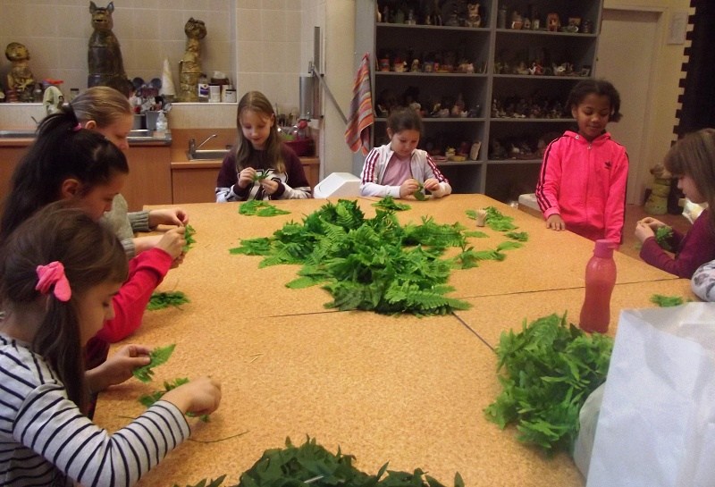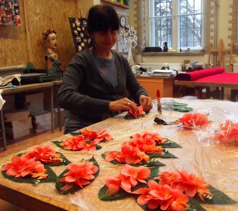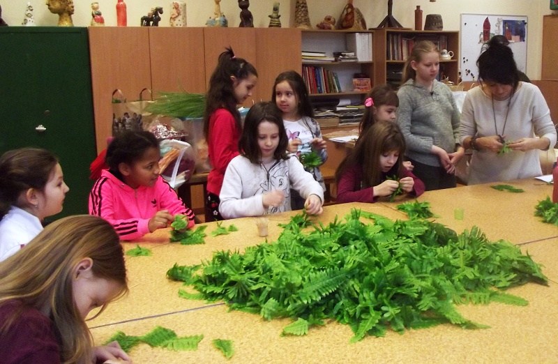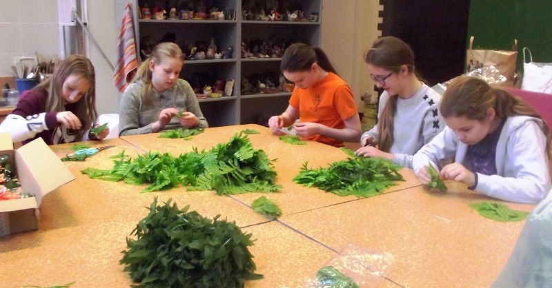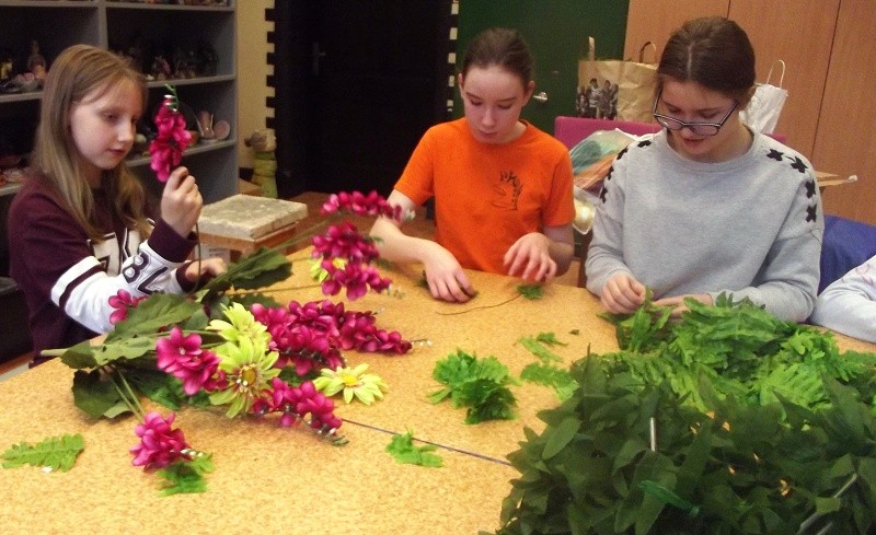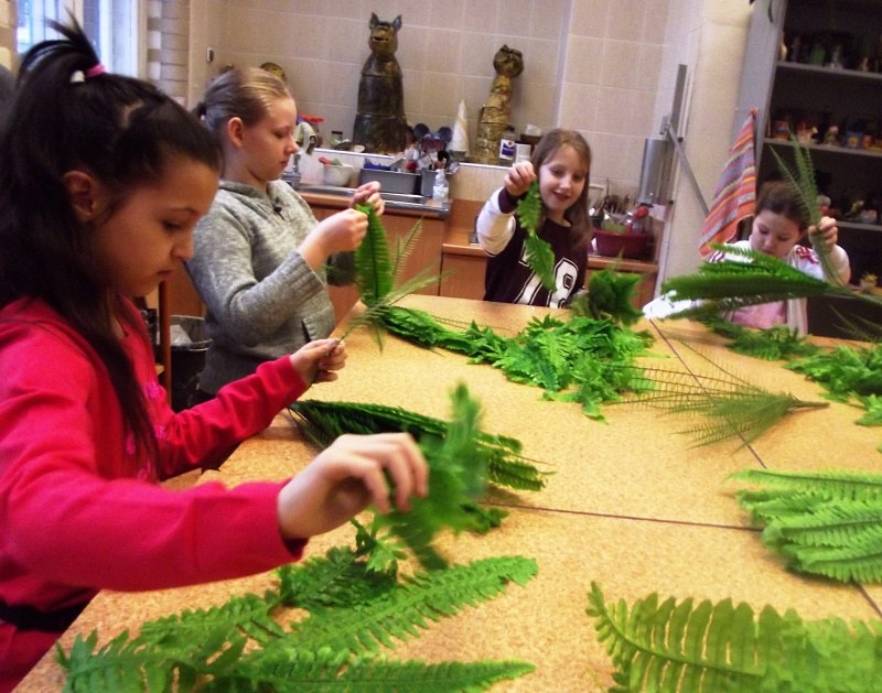Styczniowe, Etniczne Warsztaty Twórcze Pracowni Tańca Etnicznego pod kierunkiem p. Justyny Kozłowskiej były wyjątkowe. To czas ostatnich przygotowań do planowanego na 18 stycznia 2019 widowiska ,,Aloha Hawaje”. Tym razem pojawiły się na nich mamy, które wspierały przygotowanie kostiumów i dodatków do tańca. Zrobić 280 bransoletek z liści to nie jest prosta sprawa, a na Hawajach tancerki i tancerze wykonują je własnoręcznie przed każdym pokazem i to z żywych roślin! U nas powstały bardziej trwałe ozdoby, ale do złudzenia przypominające te prosto z natury. Kwiaty, liście, kostiumy już czekają na piątek, aby w pełnej krasie zaprezentować widzom fragment bogatej, hawajskiej kultury i niezwykłego tańca hawajskiego hula. Gorąco zapraszamy!