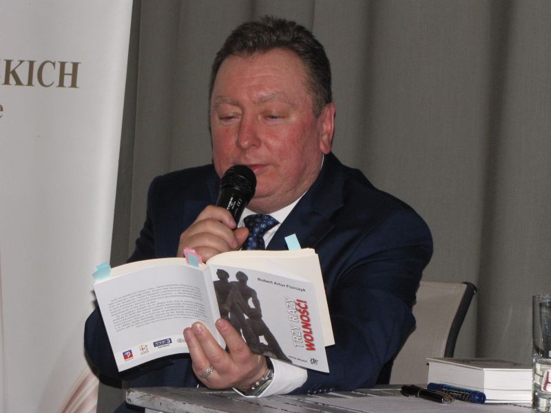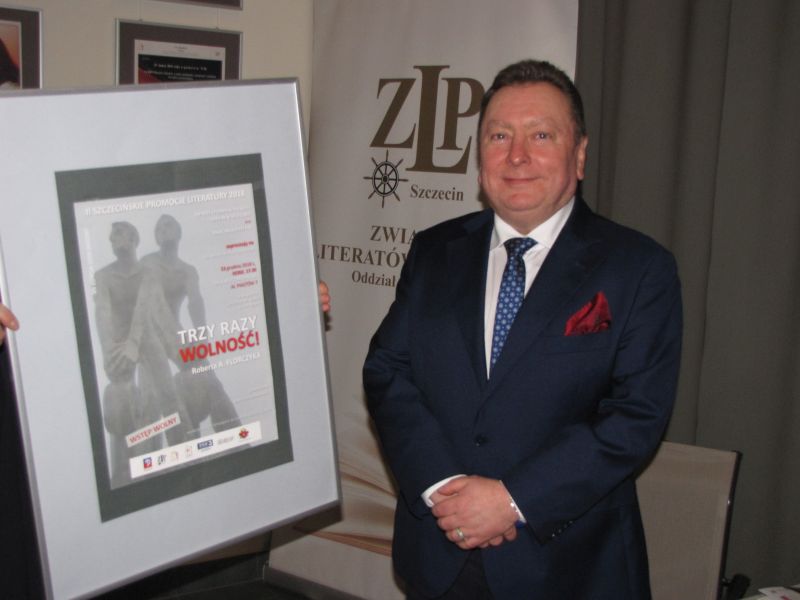 Podczas spotkania 13 grudnia 2018 roku, w sali multimedialnej w Pałacu Młodzieży, wypełnionej – po ostatnie krzesełko – Publicznością, Róża Czerniawska-Karcz (prowadząca wieczory literackie od lat) zaprezentowała szczecińskiego poetę i, jak się okazało, także prozaika, Roberta A. Florczyka oraz jego ostatnią książkę TRZT RAZY WOLNOŚĆ!, 56. pozycję wydaną w serii: akcent z dofinansowania Miasta Szczecin.