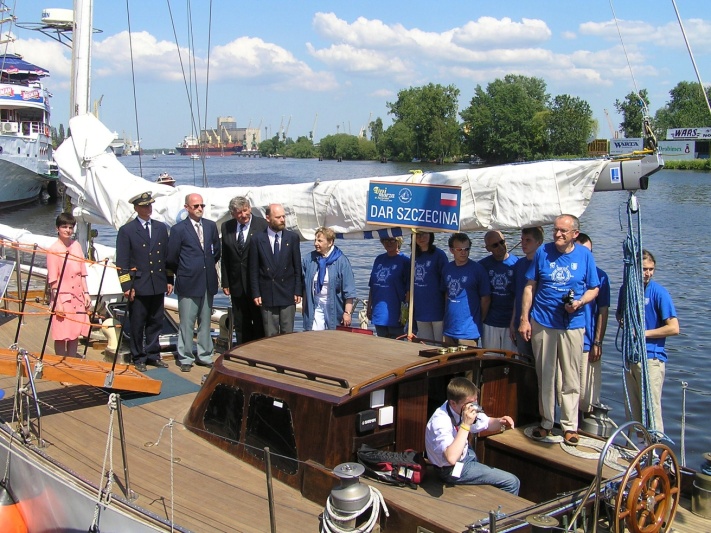 Dar Szczecina przez te 50 lat prowadzony był przez 12 kapitanów, jest Ambasadorem Szczecina, ma za sobą wiele mil morskich, a na jego pokładzie szlify żeglarskie zdobywało wielu młodych ludzi.