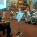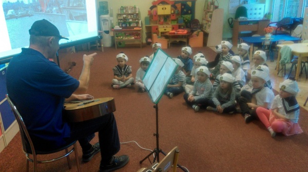 W listopadzie dzieci z naszego Koła Morskiego wzięły udział w pierwszych warsztatach z udziałem gościa z edukacji Morskiej z Pałacu Młodzieży. Były to warsztaty muzyczno – szantowe. Przyjechał do nas Pan Żeglarz Wacław Jechomowicz, przy akompaniamencie gitary grał piękne melodie żeglarskie, śpiewał szanty, a potem nauczył dzieci piosenki żeglarskiej i zaprosił je do morskich tańców. Dzięki tym warsztatom dowiedzieliśmy się co to są SZANTY. W przerwach między muzycznymi zabawami Pan Wacław pokazał dzieciom na ekranie zdjęcia z morskich rejsów i opowiedział o nich. Rozmawialiśmy też o bezpieczeństwie żeglowania, uczyliśmy się prawidłowego nakładania kapoka. Było wesoło, pouczająco i bardzo miło i umówiliśmy się z Panem na drugą część Warsztatów Szantowych na luty.