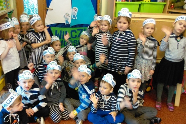 Od kilku lat nasze przedszkole „Figielek” realizuje program Edukacji Morskiej według planu ogólnych działań Pałacu Młodzieży i według planu działań własnych . W tym roku kolejna grupa przedszkolaków przystąpiła do programu i wstąpiła w szeregi naszego Koła Morskiego „Wilczki Morskie” . Dzieci były bardzo przejęte gdy dostały morskie ubranka: bluzeczki, kołnierze, czapki marynarskie i opaski i dowiedziały się, że przez cały rok będą brały udział w przeróżnych spotkaniach i warsztatach morskich, konkursach o tematyce morskiej, że będą spotykać się z żeglarzami, wyjeżdżać na wycieczki i imprezy morskie i poznawać wszelkie tajniki żeglowania. Kto wie, może złapią bakcyla i z tych młodych przedszkolaków w przyszłości wyrośnie niejeden dzielny żeglarz lub marynarz. Ahoooj!
