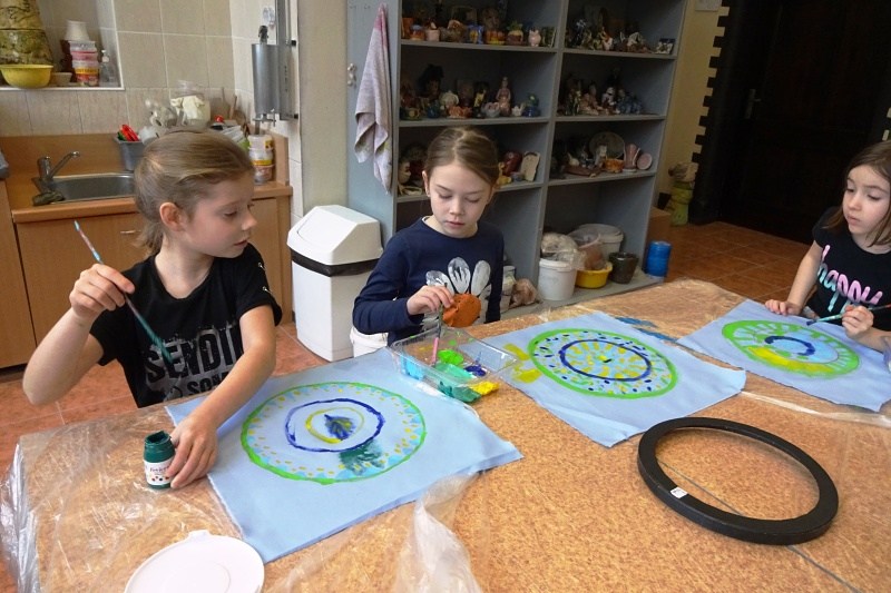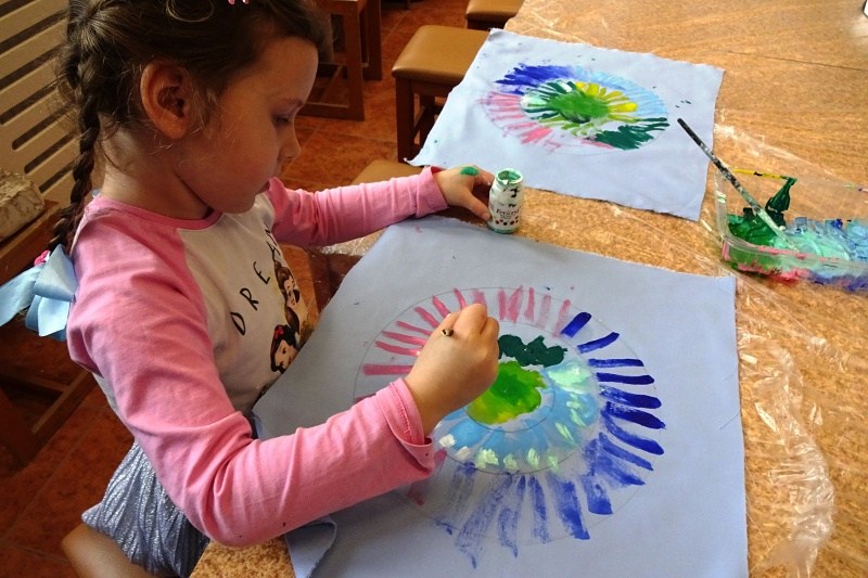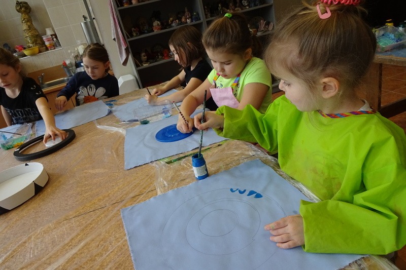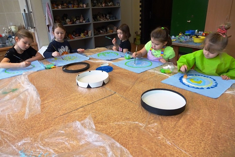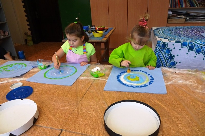 Marcowe, Etniczne Warsztaty Twórcze Pracowni Tańca Etnicznego pod kierunkiem Justyny Kozłowskiej skierowane były dla najmłodszych grup Mini Etniki, Małej Etniki i Etniki. Dziewczęta malowały obrazy na bazie koła (mandale). Co dalej powstanie ? Z pewnością etniczne ozdoby, które staną się częścią kolejnej wystawy. Zobaczymy już po warsztatach w kwietniu. Malowanie przy dźwiękach muzyki etnicznej zdecydowanie pobudza wyobraźnię!
