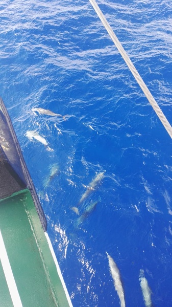 Łatwo było zorientować się, że jesteśmy coraz bliżej celu, bo zaczęli odwiedzać nas nasi dobrzy znajomi – delfiny. W towarzystwie wesoło bawiących się przy dziobie przyjaciół, po 17 dniach żeglugi dotarliśmy do Azorów. Na pięknej portugalskiej wyspie byliśmy świadkami wielkiej tradycyjnej bitwy na balony z wodą z okazji końca karnawału. Zapełniono aż 70 kg foliowych woreczków (UWAGA – to waga pustych woreczków). Cała zabawa trwała około 4 godzin. Udaliśmy się też na wycieczkę po wyspie, która powstała na skutek wybuchów do dziś aktywnych, ale na szczęście uśpionych wulkanów. W ich kraterach można podziwiać lazurowe wody przepięknych jezior. Cala wyspa jest niesamowicie zielona. Jest to jedyne miejsce w Europie gdzie rosną ananasy.
