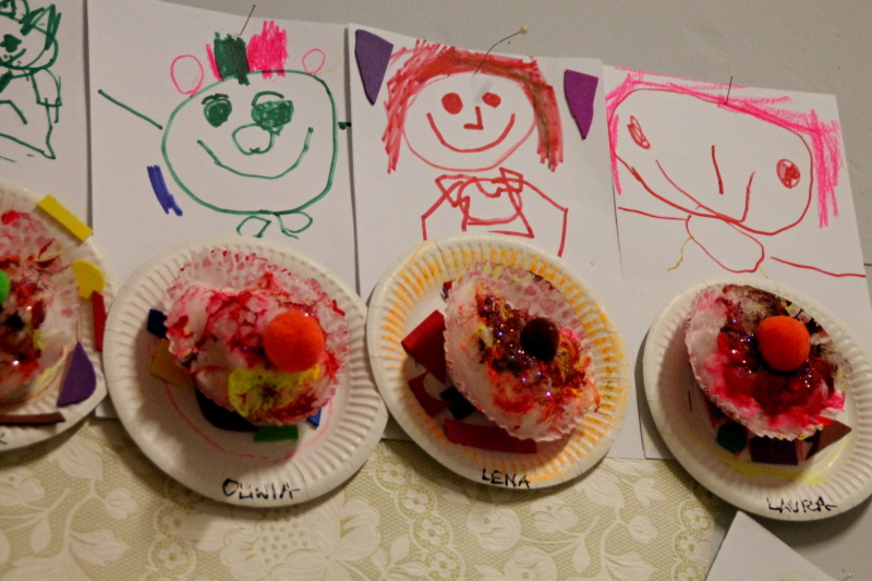 W trakcie zajęć plastycznych dzieci przygotowały dla kruka i jego przyjaciół kolorowe muffiny, które można podziwiać na tablicy związanej z projektem WYCHOWANIE PRZEZ CZYTANIE (piętro III).
