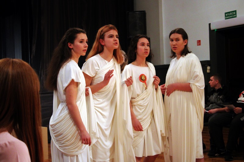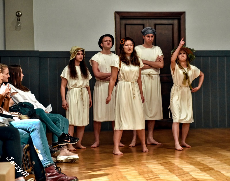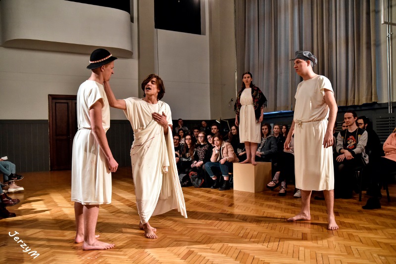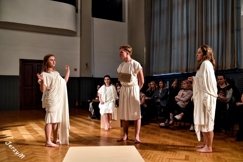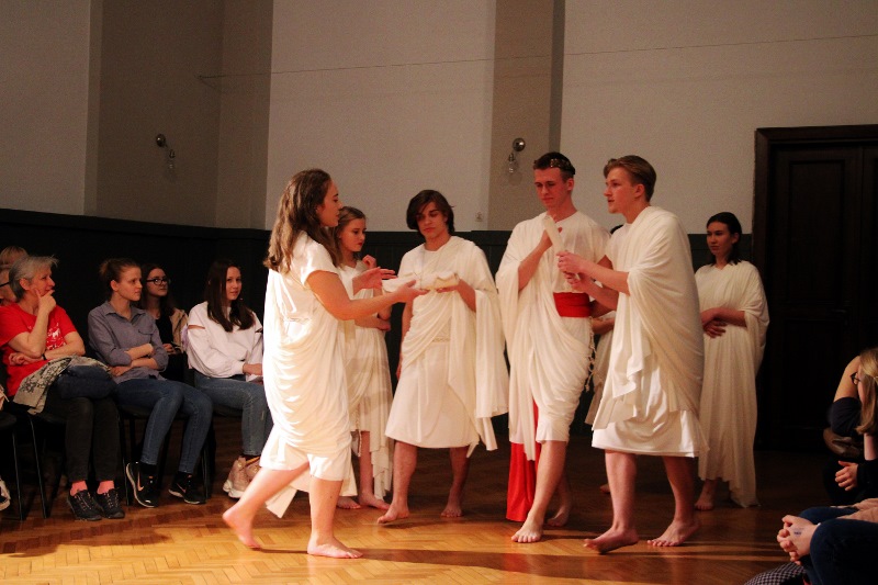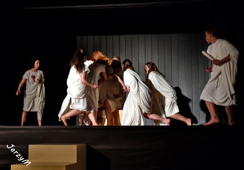 Dramat „Juliusz Cezar” Szekspira należy do jednego z najczęściej wystawianych. Tytuł może być mylący, bowiem większość fabuły sztuki skupia się wokół postaci Marka Brutusa, faworyta dyktatora, i jego rozterek emocjonalnych. W pałacowej wersji tego dzieła Szekspira młodzież skupiła się na walce kobiet-spiskowców o swoje prawa. Wykluczone przez tyrana z życia politycznego starają się z pomocą Brutusa (również kobiety) wrócić do senackiej rzeczywistości. Jednakże walka o władzę bywa brutalna i nie raz trzeba pobrudzić sobie ręce, by zdobyć upragnione prawa. Choć tyran pada skrwawiony pod naporem sztyletów, w walce o władzę pojawiają się kolejni przeciwnicy – ulubieniec Cezara, Marek Antoniusz oraz wzburzony rzymski lud.