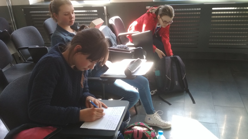 Gdy po raz pierwszy przyszłam na zajęcia dziennikarskie, bardzo się wstydziłam. Trudno się dziwić- byłam nowa, nikogo nie znałam, nie wiedziałam, czego się spodziewać, a poza tym dołączyłam do grupy w drugim semestrze. Na początku mało mówiłam i byłam nieśmiała. Odpowiadałam na pytania krótko i zwięźle. Było tak przez pierwsze 15 minut. Ale dzięki miłemu towarzystwu moje zachowanie szybko się zmieniło i zaczęłam czuć się pewniej. Zwłaszcza, że bliżej poznałam Natalię i Małgosię. Szybko znalazłam z nimi wspólny język. Przeprowadziłam z nimi miłą rozmowę i dużo dowiedziałyśmy się o sobie. W międzyczasie Pani wtrąciła uwag, pomagając nam zadawać ciekawsze pytania. Takie powitanie w nowej grupie bardzo mnie zaskoczyło i dzięki temu nabrałam ochoty na kolejne zajęcia. Od tej pory z radością przychodzę do Pałacu Młodzieży i zgłębiam tajniki sztuki dziennikarskiej.