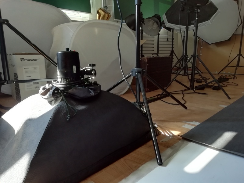 Jedną z pracowni w Pałacu Młodzieży jest pracownia fotograficzna prowadzona przez Pana Jarka Wochowskiego. Na pierwszy rzut oka widać, że sala dzieli się na część studyjną i multimedialną. Moją uwagę przykuła spora kolekcja aparatów z różnych czasów, w tym najstarszy „Druh”, liczący ponad 50 lat. Jest tam również stary polaroid oraz japoński „Mitsuba” niedostępny już w Polsce. W pracowni zaskoczyła mnie duża ilość lamp i to w dodatku bezprzewodowych! Z lampami idą w parze różnorodne tła i statywy. Zdziwiła mnie tekże obecność komputerów, lecz szybko zrozumiałem, jak ważną pełnią rolę w fotografii. Są wyposażone w programy graficzne, udoskonalające zdjęcia. Kilka z nich wisi na ścianach i warto przy okazji dodać, że są to prace wykonane przez uczestników zajęć. Teraz już wiem, że do profesjonalnego fotografowania nie wystarczy sam aparat.