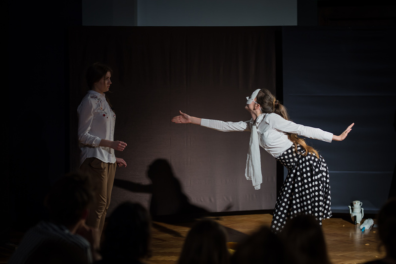Tegoroczne podsumowanie teatralnego roku szkolnego było bardzo obfite. Nasi goście mieli okazję wziąć udział w Wieczorze Teatralnym współtworzonym przez trzy grupy teatralne: Bez Barier, Teatr Maszkaron oraz grupę Faktoria. Każda z nich zaprezentowała inna formę teatralną. Na początku wystąpiła grupa Bez Barier ze spektaklem pantomimiczno-tanecznym „Ognisty ptak” na podstawie rosyjskiej baśni pod tym samym tytułem oraz z muzyką Igora Strawińskiego. Spektakl ten był powrotem do jednego z pierwszych projektów Bez Barier, znacznym jego pogłębieniem i rozszerzeniem. Następnie publiczności zaprezentował się Teatr Ruchu i Maski MASZKARON ze spektaklem „My ze Stepford” na podst. „Żon ze Stepford” Iry Levina.