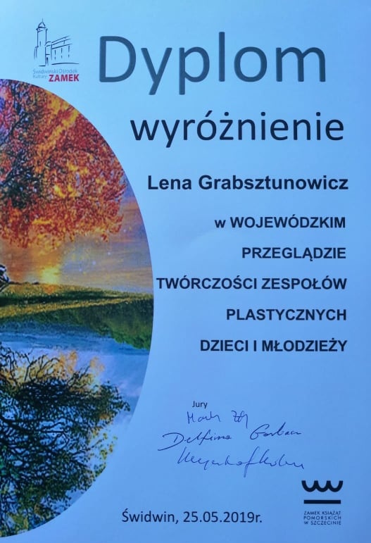 Miło nam poinformować, że w ogłoszonych wynikach Wojewódzkiego Przeglądu Twórczości Zespołów Plastycznych Dzieci i Młodzieży w Świdwinie, wśród laureatów pojawili się również uczestnicy pałacowych pracowni plastycznych. Są to: Magdalena Marciniak (op. art. Bogumiła Kuźnicka) oraz Kornelia Syrek (op. art. Mariola Grochowska). Praca Leny Grabsztunowicz (op. art. Bogumiła Kuźnicka) – otrzymała wyróżnienie w konkursie.