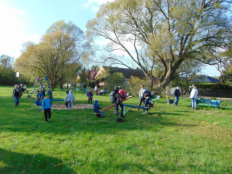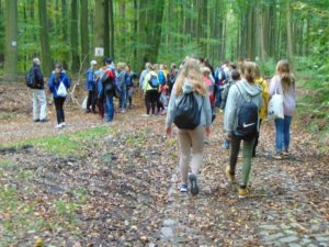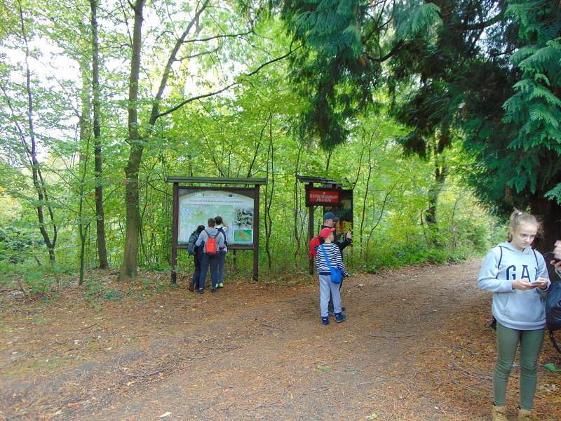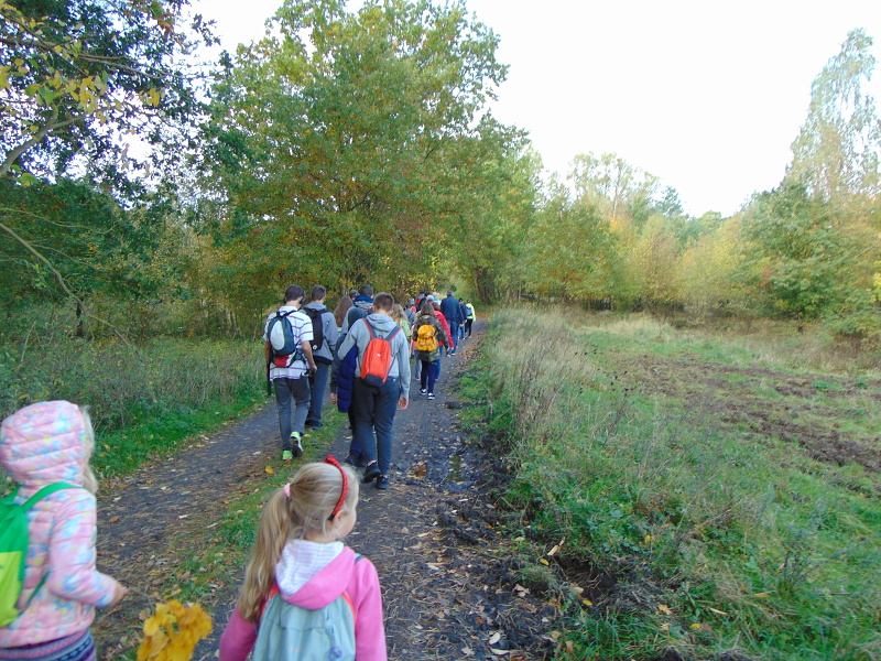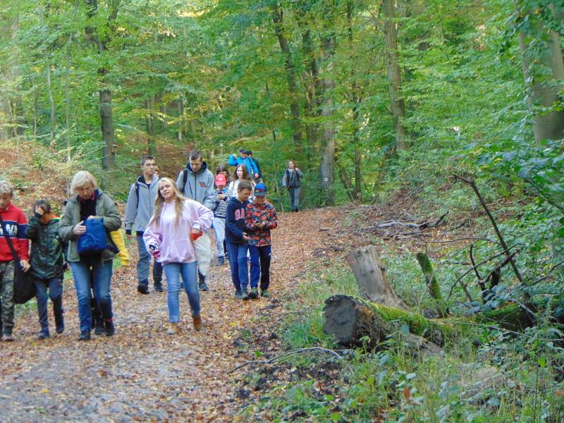 Wyruszyliśmy z Płoni i szlakiem żółtym skierowaliśmy się w stronę Puszczy Bukowej. Tradycyjnie, dla nabrania energii, zrobiliśmy przystanek na placu zabaw RAJ. Po drodze wiele radości sprawiły nam spotkane na ul. Deszczowej konie. Jesienna puszcza zaprezentowała się wspaniale. Szkoda, że nie było czasu na zbieranie grzybów, które kusiły nas na każdym kroku. Celem naszej wędrówki było Mazurkowo, w którym rosną pomnikowe żywotniki Mazurkiewicza. Stoją tam budynki dawnej leśniczówki Bukowo. Na zakończenie był krótki odpoczynek i uzupełnienie potwierdzeń trasy w książeczkach turystycznych. A potem czekał nas 4 – kilometrowy spacer do autobusu.