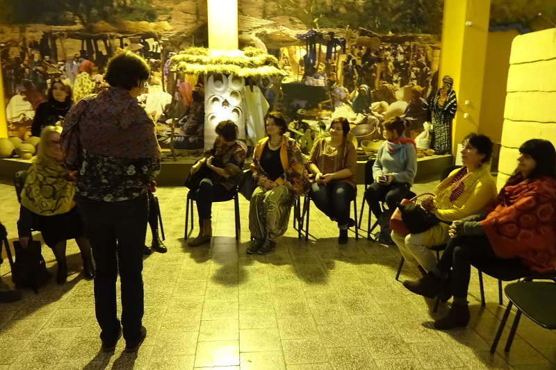 Uczestniczki spotkania miały okazję usłyszeć wiele interesujących informacji dotyczących wystawy, ale nie tylko. Pani Ewa z ogromną pasją opowiadała o swoich zawodowych pobytach w Afryce i chętnie dzieliła się wiedzą zdobytą wprost u źródeł.