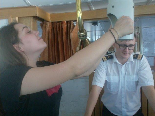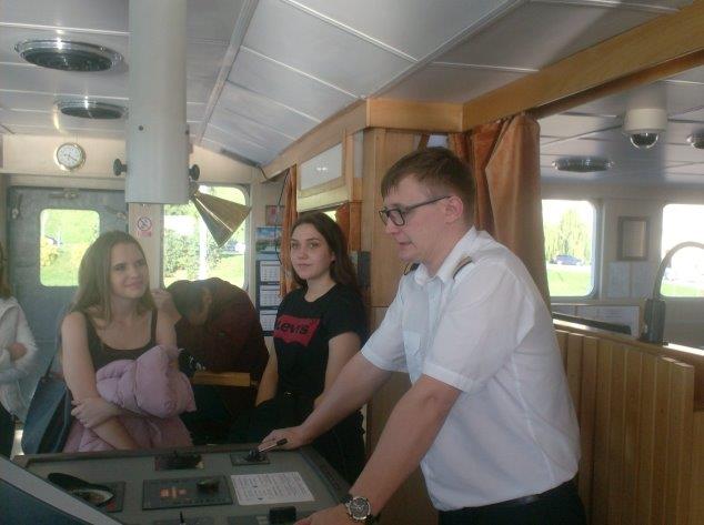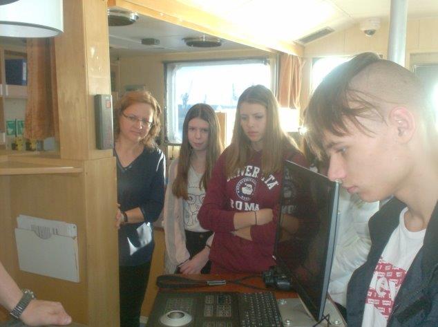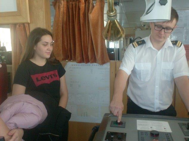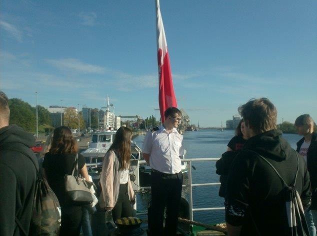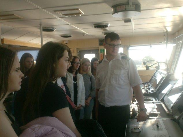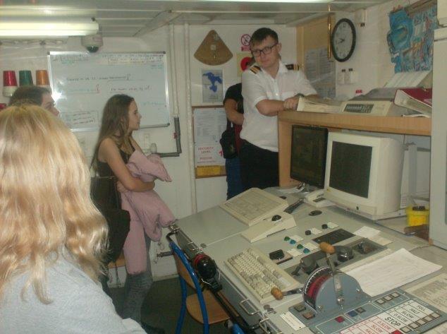 Na wstępie zwiedziliśmy statek Akademii Morskiej Nawigator XXI. Drugi oficer na statku opowiedział o wyposażeniu i przeznaczeniem statku jako jednostki służącej szkoleniu przyszłych kadr marynarzy.
