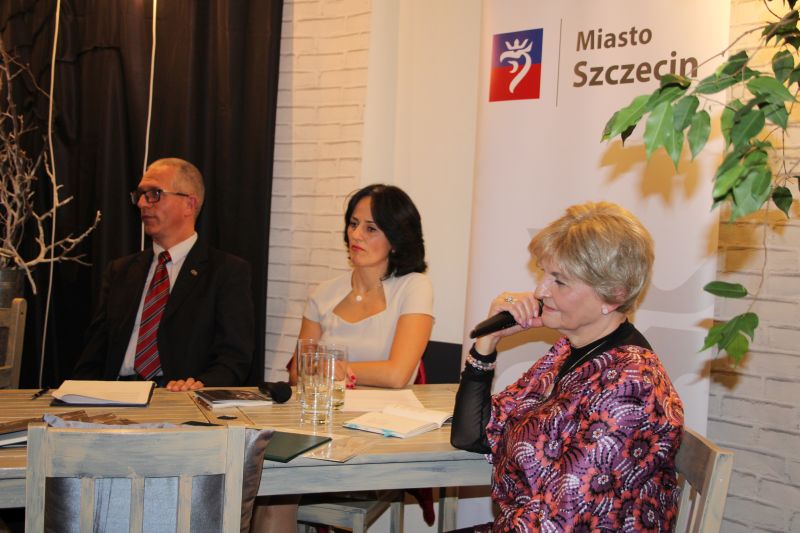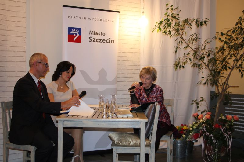 A spotkaliśmy się z okazji promocji jej najnowszej książki poetyckiej „w hurtowni czasu” oraz uhonorowania jej aktywności literacko – społecznej przez Oddział ZLP w Szczecinie nagrodą im. Niny Rydzewskiej – RÓŻĄ POETÓW.
