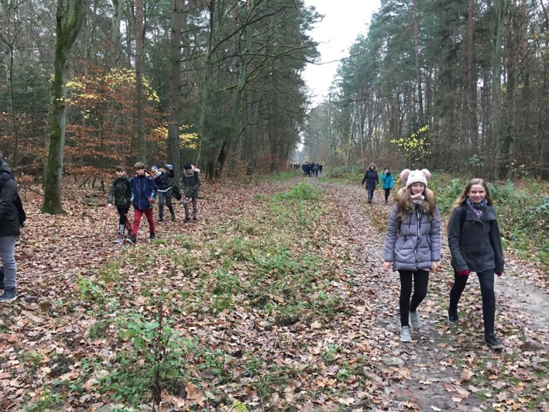 Celem naszej wędrówki była Gajówka Żółtew w Bartoszewie. Trasę rozpoczęliśmy czarnym szlakiem, by po 2 km dojść do Leśniczówki Owczary. Odpoczywaliśmy przy leśniczówce. Po krótkim odpoczynku ruszyliśmy czerwonym szlakiem w stronę mety naszego rajdu. Na koniec dotarliśmy do Gajówki Żółtew. I tutaj był czas na potwierdzenia trasy w książeczkach. W sumie było nas 142 osoby! Droga powrotna była prosta. Do przejścia było ok. 2 km. Zmęczeni, ale zadowoleni dotarliśmy do autobusu. Pogoda i humory nam dopisały!