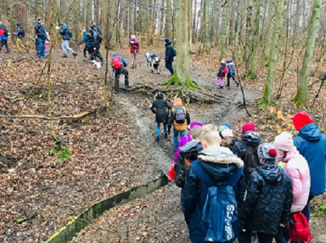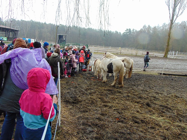 W ostatnią sobotę pogoda nam nie dopisała. Padał deszcz i było zimno. Przy pomniku Słonia na Warszewie spotkało się ponad 70 turystów. Każdy chętnie wyruszył na trasę 1010 Leśnej Soboty, bo naszym celem był Akademicki Ośrodek Jeździecki ZUT na Osowie. Po drodze zwiedziliśmy stary poniemiecki cmentarz. Gdy schodziliśmy niebieskim szlakiem w dolinę Warszowca, młodzież mogła zobaczyć jak niektórzy mieszkańcy nie szanują swojego otoczenia – całe zejście usiane było śmieciami. Po wejściu do Lasku Arkońskiego naszym oczom, po „bałaganie” w dolinie Warszowca, ukazał się bardzo przyjemny widok. Wzdłuż ulicy Świerkowej było czysto, na drzewach wisiały porozwieszane worki na śmieci. Na krótki odpoczynek zatrzymaliśmy się na polanie Cichy Kącik. Następnie szlakiem czerwonym ruszyliśmy w dalszą trasę. Na miejscu złazu zwiedziliśmy stajnie i podziwialiśmy konie.