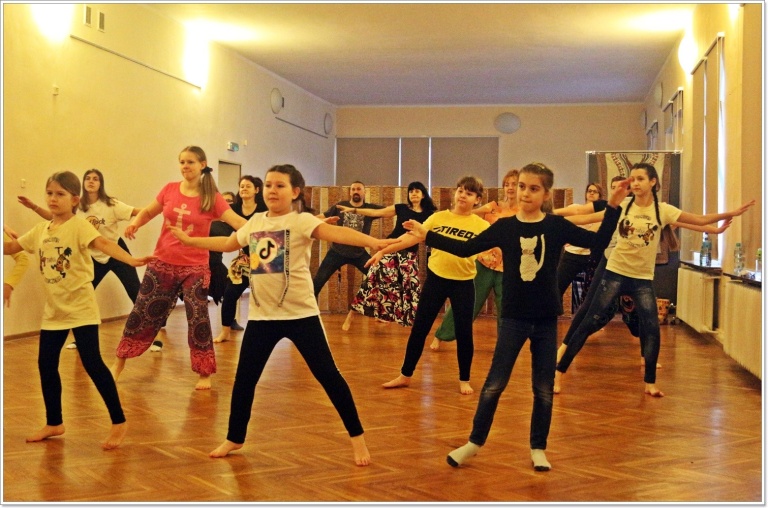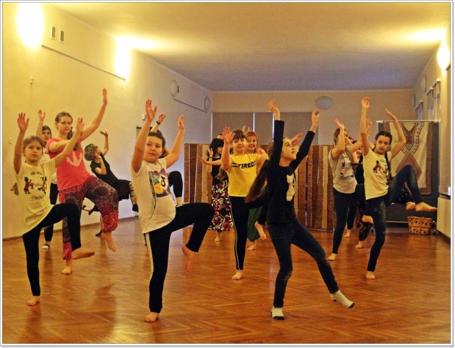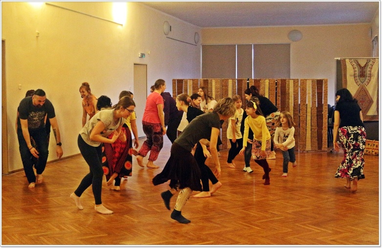 W sobotę 7 marca odbyły się Warsztaty tańca afrykańskiego, które poprowadziła p. Justyna Kozłowska (Pracownia Tańca Etnicznego). Zajęcia odbywały się w dwóch grupach, a dzieciom i młodzieży towarzyszyli dorośli opiekunowie (rodzice, ciocie, babcie).