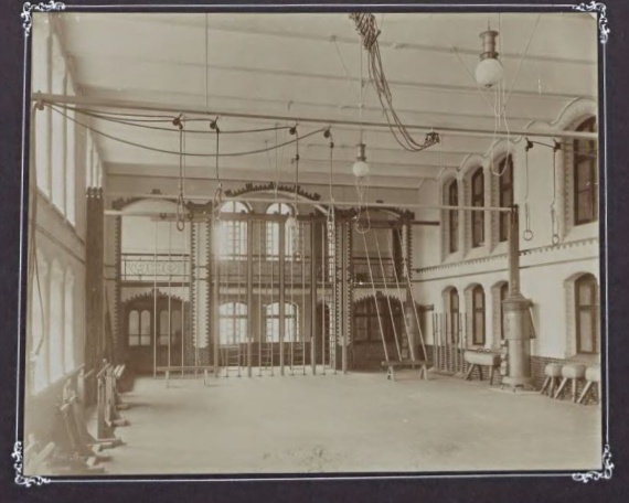 Neogotycki budynek obecnego Pałacu Młodzieży, zwieńczony schodkowymi szczytami, już wtedy posiadał salę gimnastyczną i aulę.