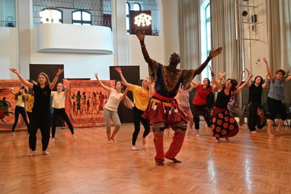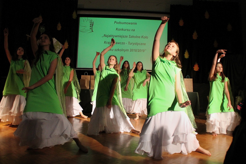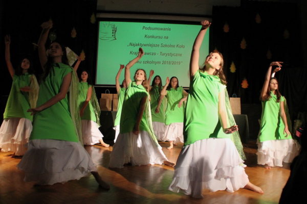 Czerwiec każdego roku szkolnego to dla nas czas podsumowań. Przypomnijmy co się zadziało! We wrześniu 2019 roku wielopokoleniowa Pracownia Tańca Etnicznego gościła w przestrzeniach Ogrodu Dendrologicznego w Przelewicach. Odbyło się to dzięki uprzejmości i zaproszeniu dyrektora Ogrodu p. Beaty Osińskiej. Zatańczyłyśmy też w Przelewickim Ogrodzie Kultury. Pokazałyśmy widowisko ,,Natura i poezja woalami malowane”. Całość dopełniła poezja p. Małgorzaty Hrycaj. W pażdzierniku wzięłyśmy udział w kolejnym wydarzeniu! Były to warsztaty dla całej naszej pracowni z pochodzącym z Gwinei tancerzem i choreografem Mamadou Dian Camara. Ten wybitny artysta przyjechał z Francji do Szczecina zaproszony przez Fundację Pierwotna Baza oraz Uderz w Bęben, z okazji czwartej edycji Festiwalu Africa Trip, którego pomysłodawcą i organizatorem jest Paweł Sasim( etnolog, miłośnik Afryki, założyciel szczecińskiej grupy Uderz w bęben). Akompaniowali na bębnach afrykańskich wspaniali festiwalowi goście. W listopadzie dziewczęta z grupy Etna zatańczyły w Pałacu Młodzieży podczas wydarzenia podsumowującego Konkurs na Najaktywniejsze Szkolne Koło Krajoznawczo- Turystyczne 2018/2019. W tym samym miesiącu, grupa Duża Etna miała okazję zwiedzić wystawę afrykańską Muzeum Narodowego w Szczecinie. Z wielką pasją oprowadzała nas po niej p.Ewa Prądzyńska- kustosz Działu Kultur Pozaeuropejskich i jednocześnie Kurator Wystawy,,Zapatrzeni w niebo. Dogonowie i ich sztuka”.