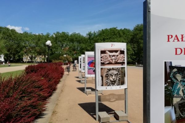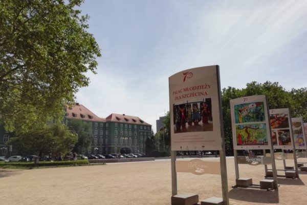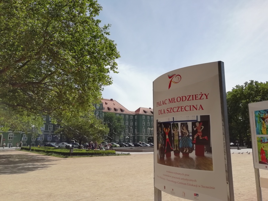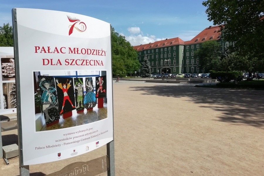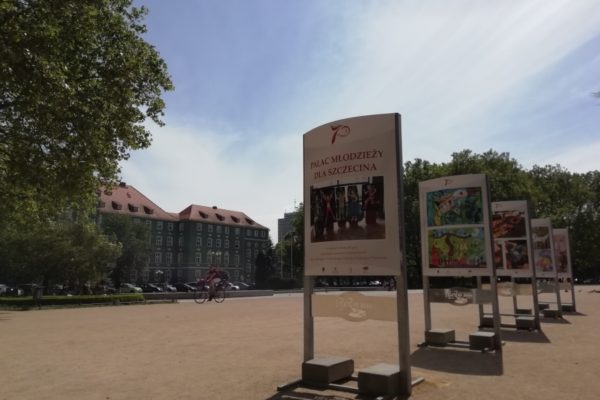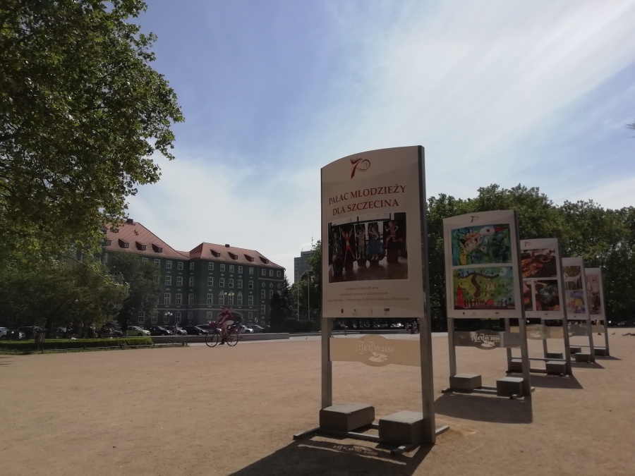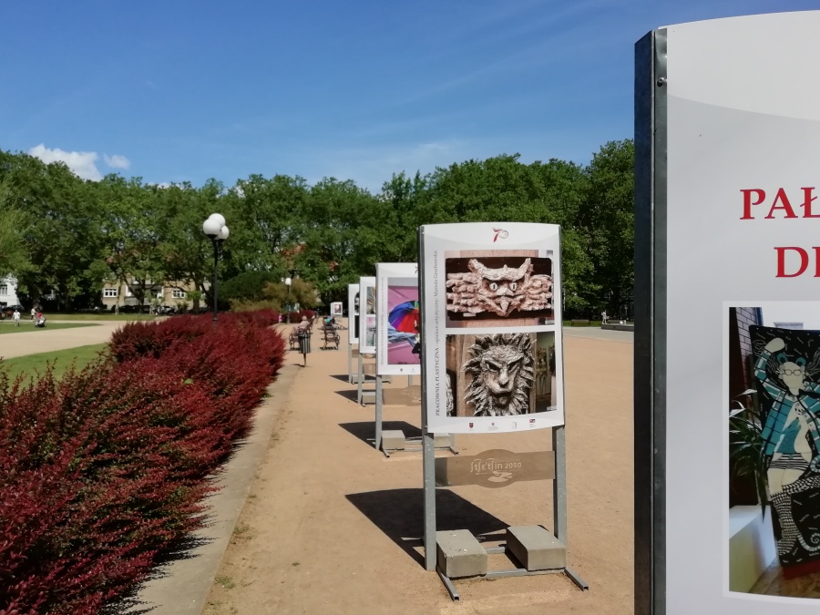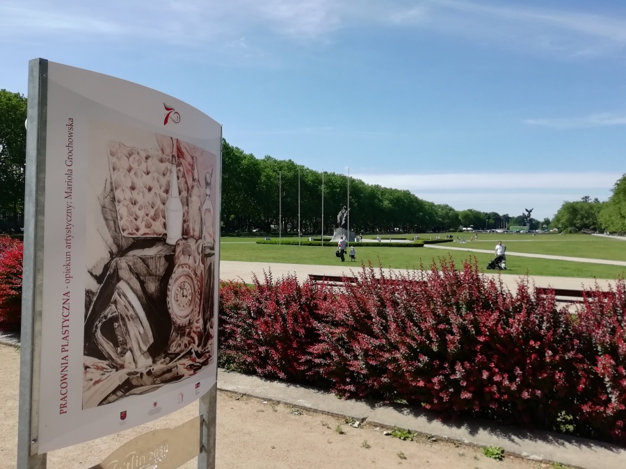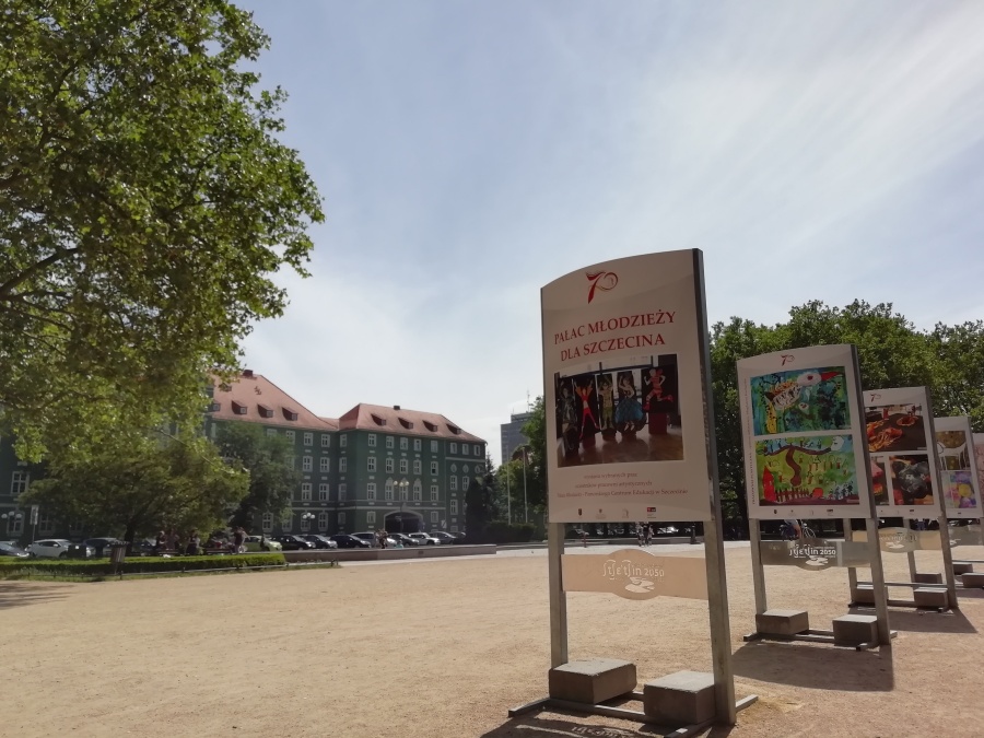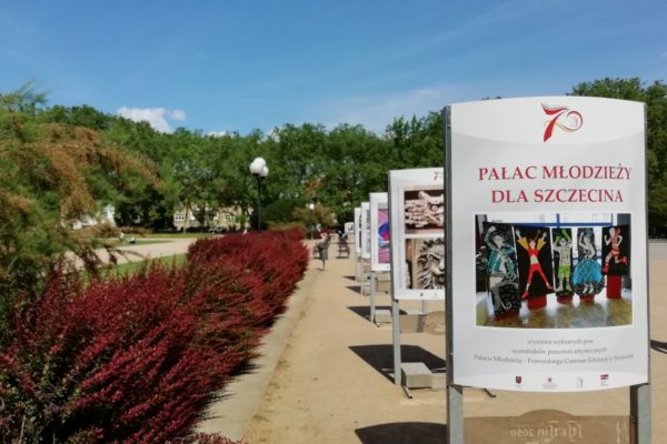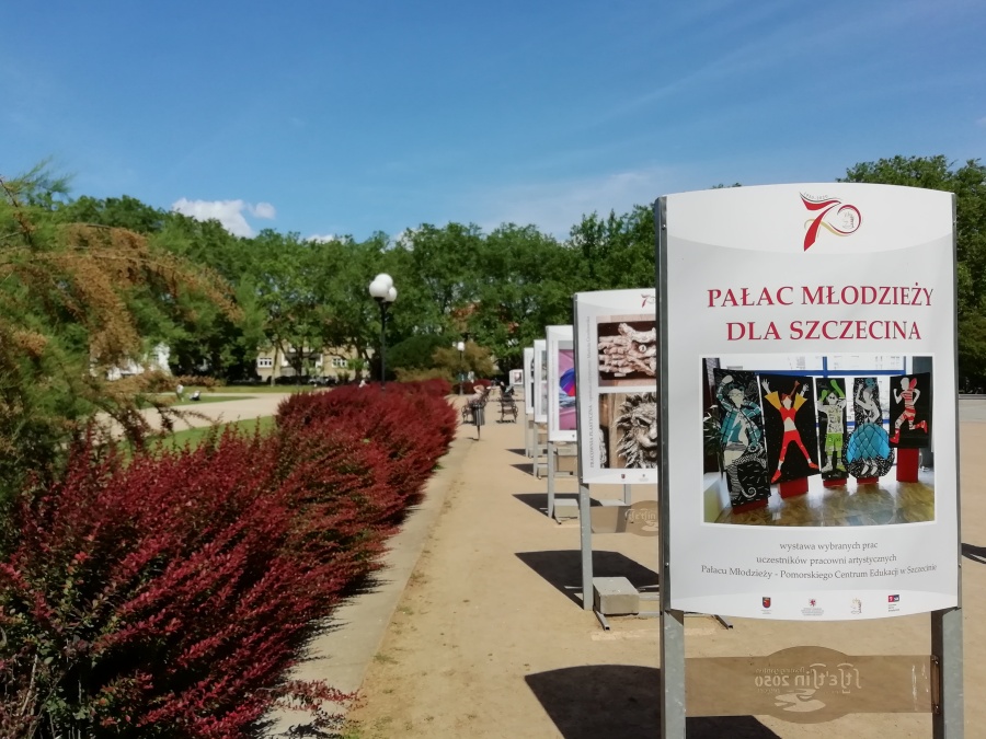 Jubileuszową wystawę pod chmurką, prezentującą dzieła uczestników wybranych pracowni artystycznych Pałacu Młodzieży w Szczecinie można oglądać na Jasnych Błoniach.