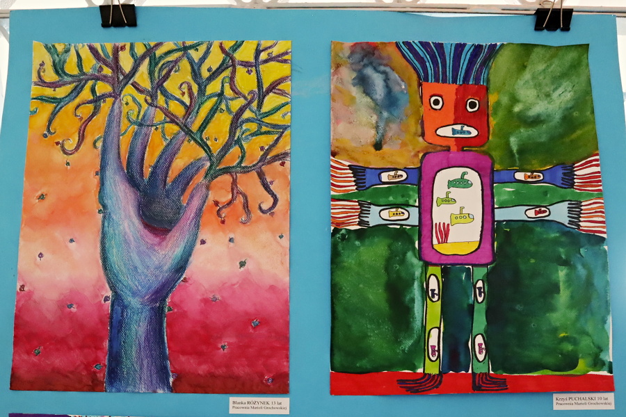 WYSTAWA NA KRACIE prezentuje prace uczestników Pracowni Plastycznych, którzy tworzyli pod opieką artystyczną p. Bogumiły Kuźnickiej, Marioli Grochowskiej oraz Magdaleny Kucharskiej.
