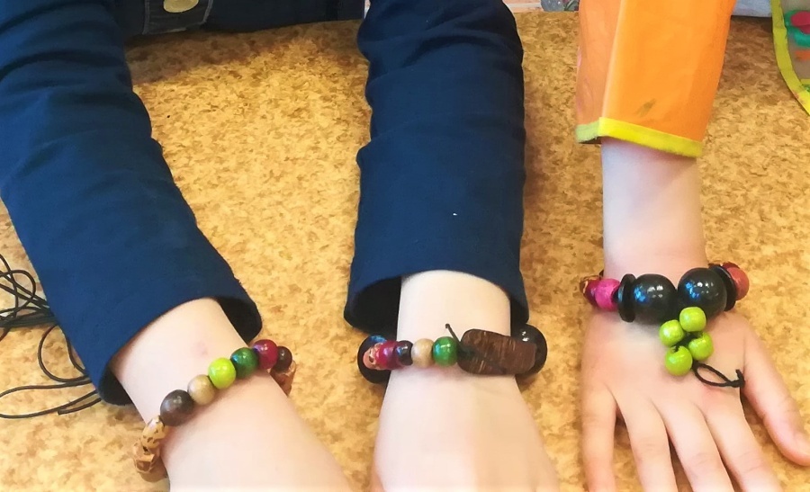 W trakcie zajęć powstały bransoletki z drewnianych koralików podobne do tych, które ich nauczycielka tańca przywiozła z Afryki. Dziewczęta zaprojektowały również muszelkowe obrazki.