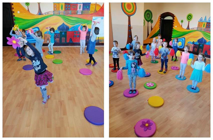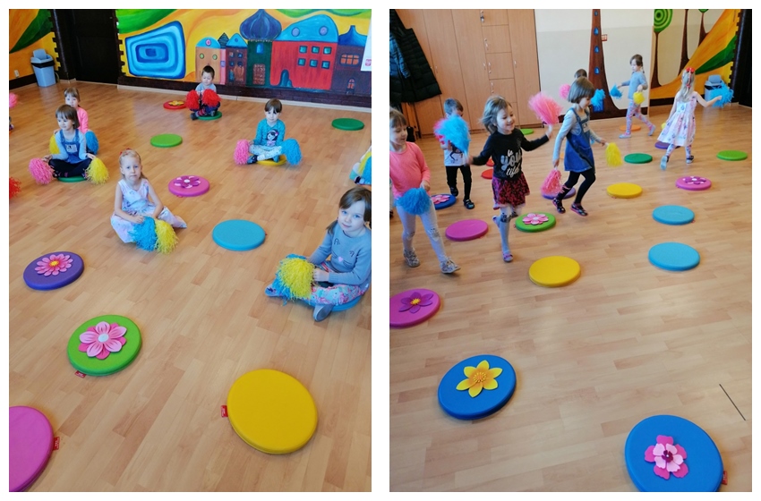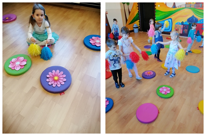 Dziś na zajęciach muzyczno ruchowych witaliśmy wiosnę. W naszej sali zakwitły piękne kwiaty. Przyfrunęly barwne motyle i zaśpiewały ptaki. Tańczyliśmy walca do muzyki klasycznej A. Vivaldiego „Wiosna”, śpiewaliśmy wiosenne piosenki, bawiliśmy się w gąsienicę i tańczyliśmy taniec „Na zielonej polanie”. Było bardzo wesoło i kolorowo. Wiosno, teraz już czekamy na cieplejsze dni!
