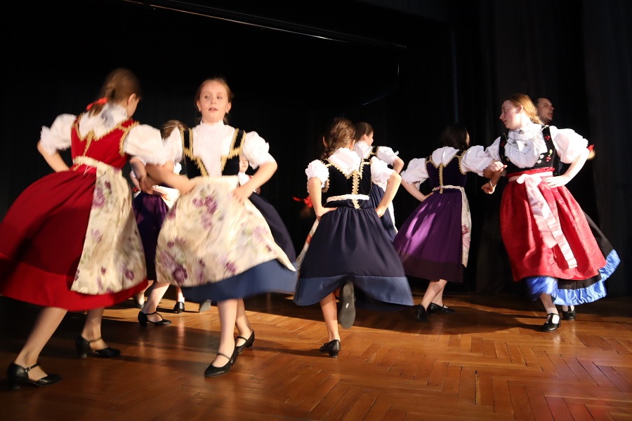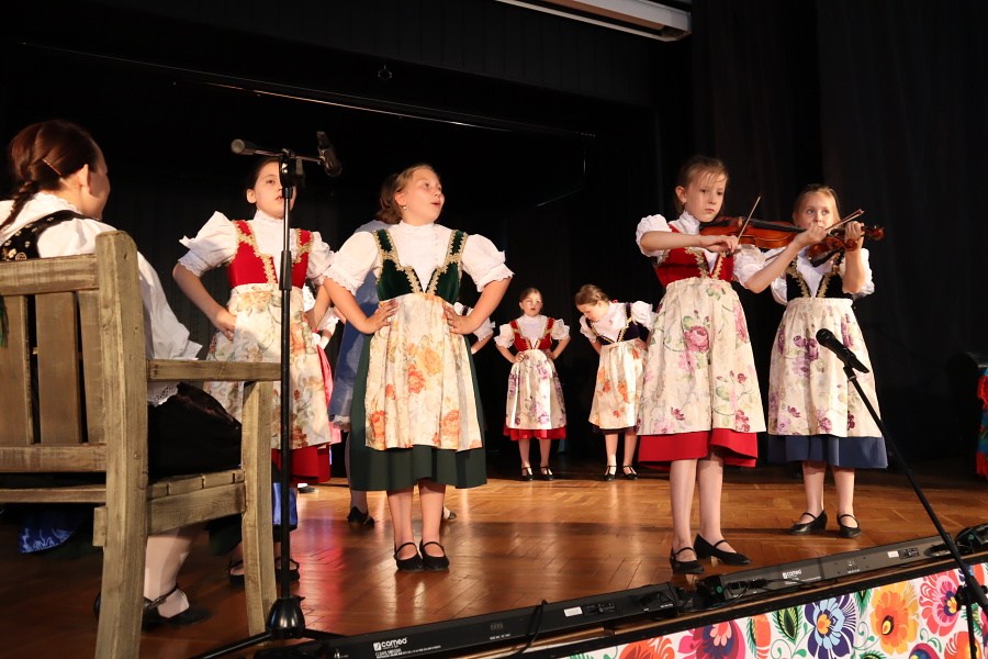 Rodziny i bliscy zgromadzeni na widowni obserwowali popisy taneczne, w parach, trójkach, zarówno całej grupy jak i solistów. Słuchali piosenek, wykonywanych do akompaniamentu kapeli Zespołu oraz młodych skrzypaczek.