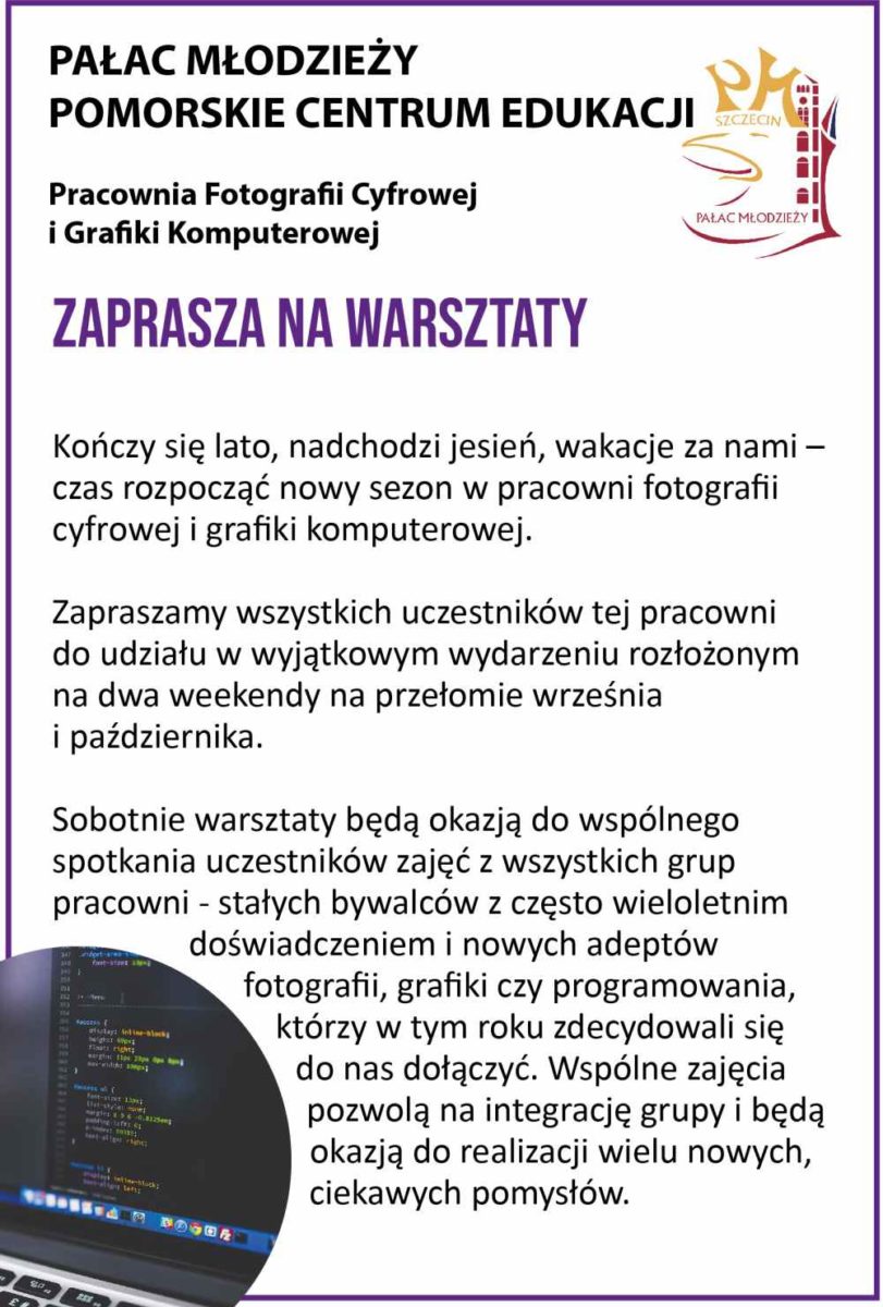 Pracownia Fotografii Cyfrowej i Grafiki Komputerowej zaprasza na warsztaty!