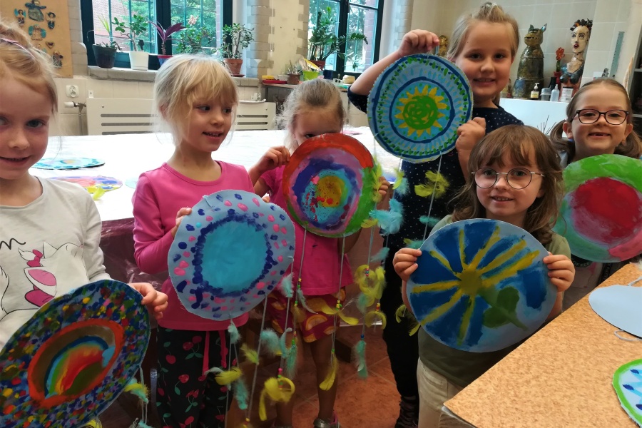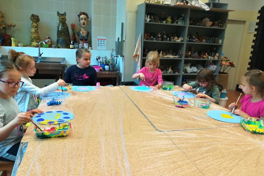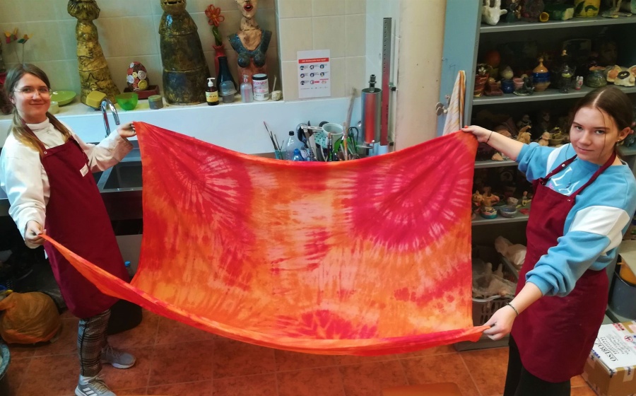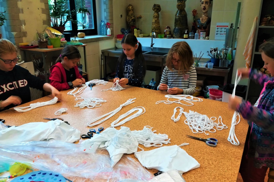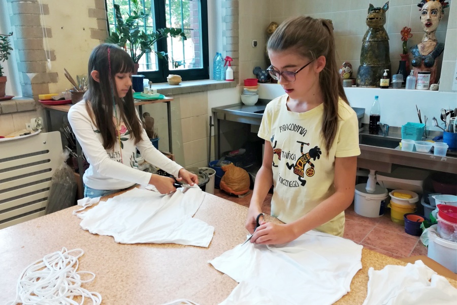 Ostatnia sobota września w Pracowni Tańca Etnicznego pod kierunkiem Justyny Kozłowskiej upłynęła niezwykle pracowicie. Dziewczęta malowały i barwiły tkaniny. Zobaczyły, że można z powodzeniem wykorzystywać to, co z pozoru jest już nieprzydatne. Zniszczone koszulki stały się bazą do tworzenia oryginalnych naszyjników i bransoletek. Bawełniane sznurki inspirowały do zabawy, a nawet wykonywania tanecznych elementów. Jak zawsze był to czas na rozmowy i wspaniałą integrację.