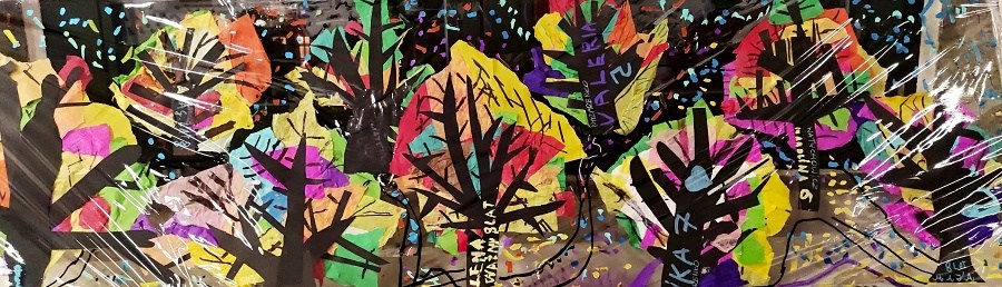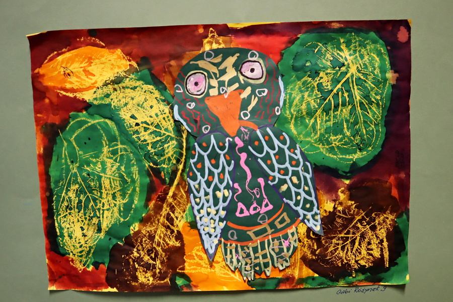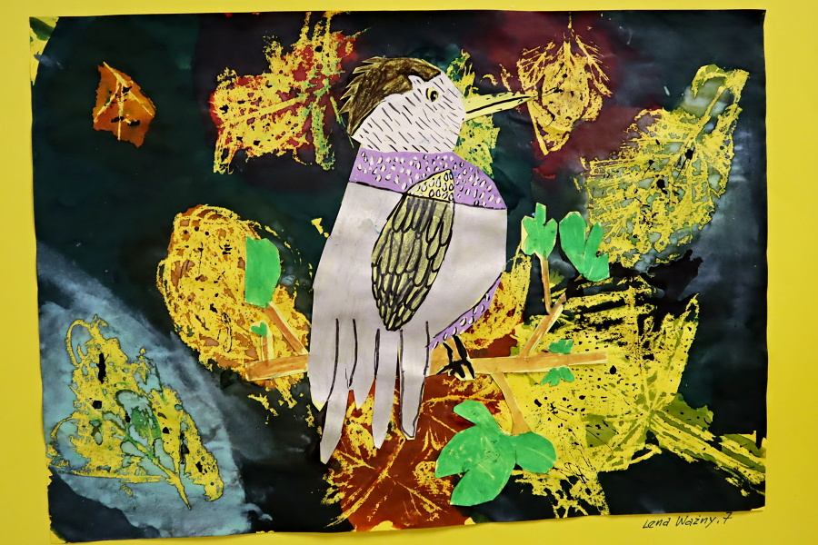 Za oknem już JESIEŃ i jesienne drzewa oraz liście obecne są również na korytarzach Pałacu Młodzieży. A to wszystko za sprawą naszych młodych artystów! Ptaki – Cudaki w liściach z batiku oraz jesienne drzewa przypominają o nowej porze roku.