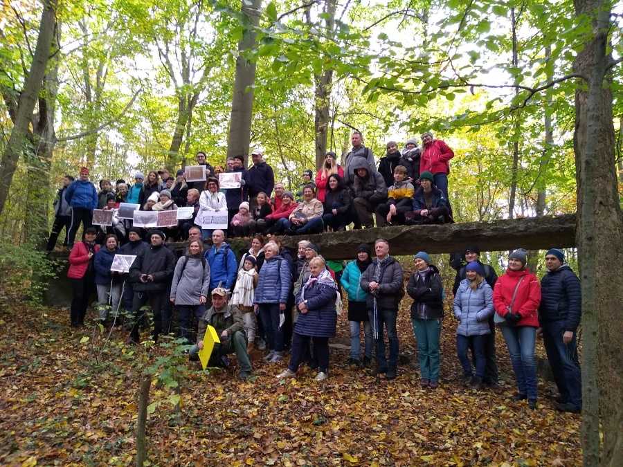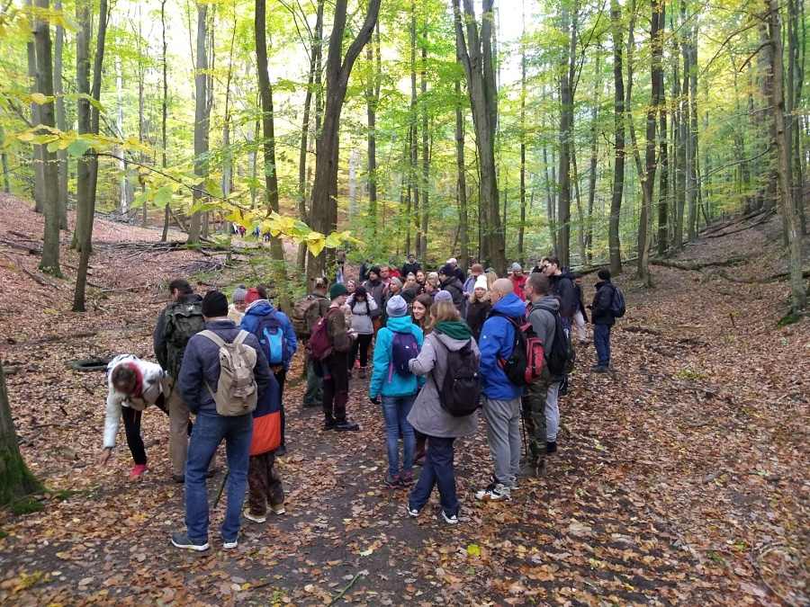 Wycieczka po Puszczy Bukowej miała zupełnie inny wymiar i charakter. Dwanaście kilometrów trasy zaplanowanej przez przewodnika, odsłaniało nam kolejne zapomniane i porzucone wspaniałości tej dawnej dzielnicy zdrowia i rekreacji. Najpierw, minąwszy osiedle Bukowe i zawędrowawszy nieco w las, weszliśmy na teren dawnej restauracji, po której pozostał tylko głaz z fontanny. Następnie odkryliśmy ruiny dawnego sanatorium przekształconego później w sierociniec. Kolejne historie były już bardziej diaboliczne, bowiem opowiadały o czartach i demonach związanych z niegdysiejszymi przerobionymi na restauracje – zgodnie z XIX wieczną modą – młynami. Po drodze wspięliśmy się na najwyższe wzniesienie Puszczy Bukowej, Bukowiec, oraz poznaliśmy historię katastrofy samolotu na Wzgórzach Bukowych.