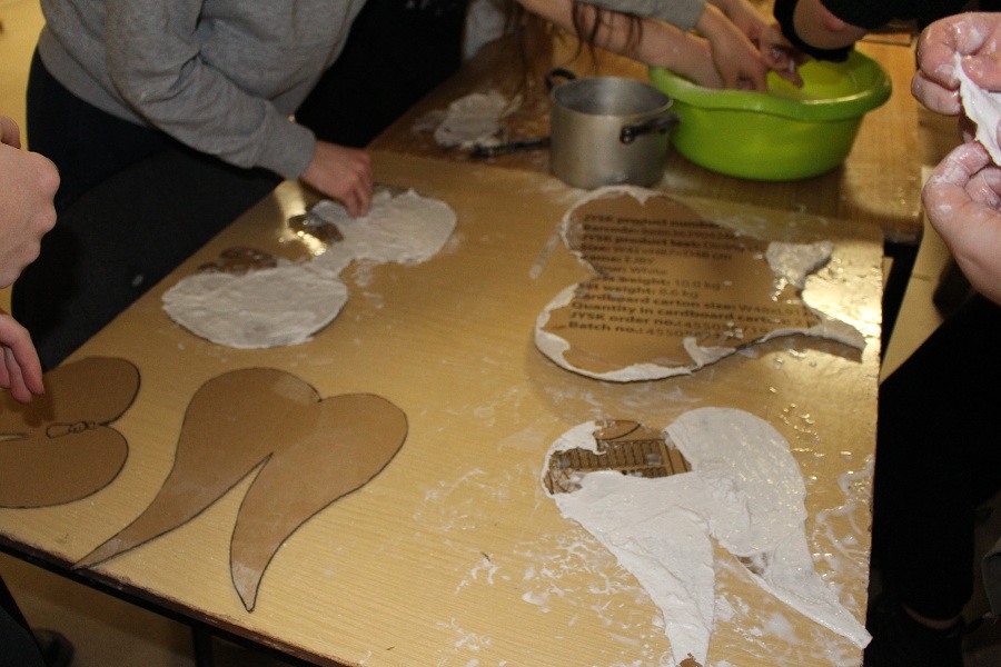 Noc Teatralna grupy DELL`ARTE z Pracowni Teatralno-Muzycznej pań: Iwony Faj i Iwony Szary obfitowała w najróżniejsze interakcje. W ramach warsztatów „anielskich” zdążyliśmy stworzyć gipsowe skrzydła i głowy, nie zdążyliśmy wykreować aniołów w całości, ponieważ warstw gipsu było na tyle dużo, że niestety, nie zdążyły przeschnąć. Mamy zamiar dokończyć je podczas poniedziałkowych zajęć, a rezultatami, oczywiście, podzielimy się na stronie. 🙂