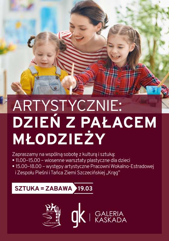 Zapraszamy serdecznie, w sobotę 19 marca do Galerii Kaskada (poziom -1), gdzie w godzinach 11:00-15:00 będzie można wziąć udział w warsztatach plastycznych przygotowanych przez nauczycielki Pracowni Plastycznych i Ceramicznej z Pałacu Młodzieży (op. art. Bogumiła Kuźnicka, Magdalena Kucharska, Kornelia Tumanowicz).