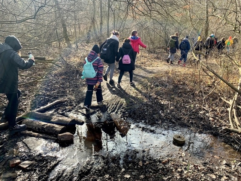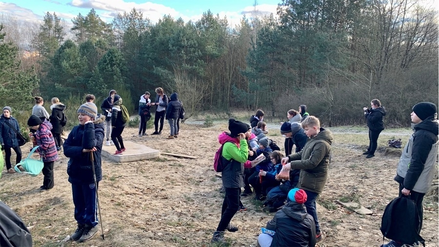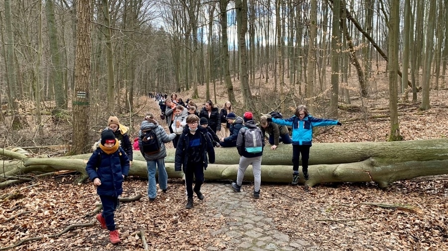 W sobotę, 5 marca, wędrowaliśmy po Puszczy Bukowej. Wędrówka rozpoczęła się na placu przy dworcu w Zdrojach. W dobrych humorach, ruszyło na Leśną Sobotę ponad 90 młodych turystów wraz z opiekunami i rodzicami. Czarnym szlakiem poszliśmy w stronę Skórczej Góry. Tam zrobiliśmy sobie krótką przerwę. Potem ruszyliśmy ścieżką spacerową przy jeziorze Szmaragdowym do niebieskiego szlaku. Przeszliśmy obok Armatniego Wzgórza i za autostradą weszliśmy na teren rezerwatu przyrody Bukowe Zdroje. Po drodze mijaliśmy wiele powalonych i połamanych drzew, które poddały się niedawnym wichurom. Na Psim Polu, miejscu złazu tej Leśnej Soboty, odpoczęliśmy i potwierdziliśmy trasy w książeczkach turystycznych. Potem ruszyliśmy żółty i zielonym szlakiem w drogę powrotną.