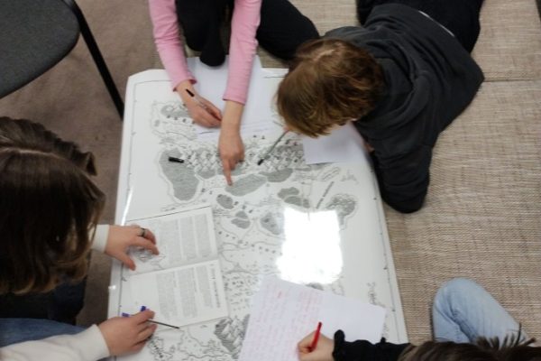 Każda kraina ma swoją historię, bohaterów i niezwykłe miejsca. Teatry Opowieści Rolplej i Rolplej Junior podczas kilku ostatnich zajęć, studiując mapę Harmonii, fikcyjnego świata stworzonego na potrzeby narracyjnej gry wyobraźni „Dziedzice”, miały za zadanie wymyślić legendy i opowieści z różnych zakątków „mapy”.