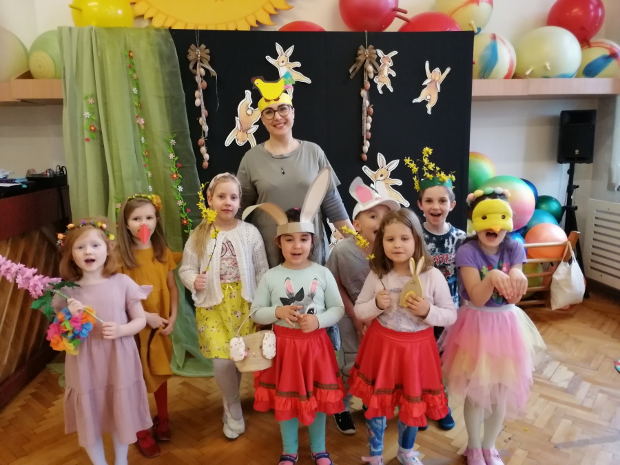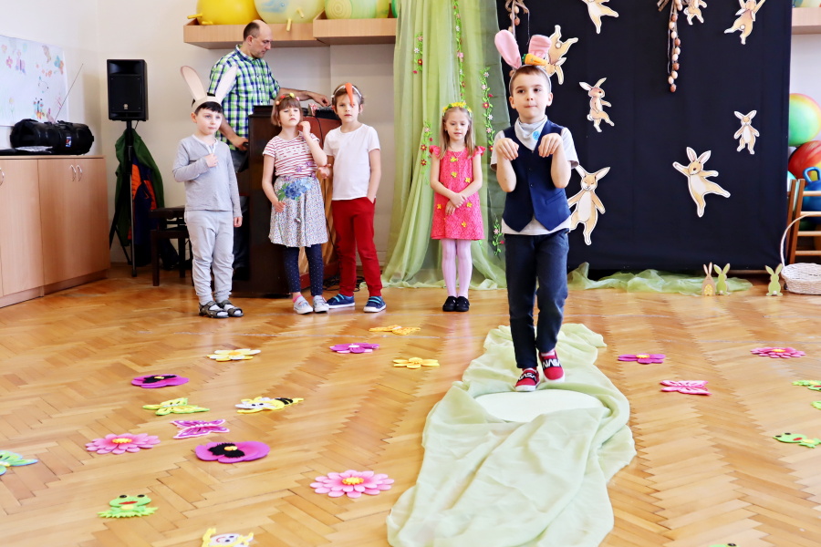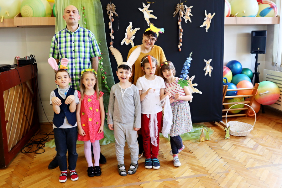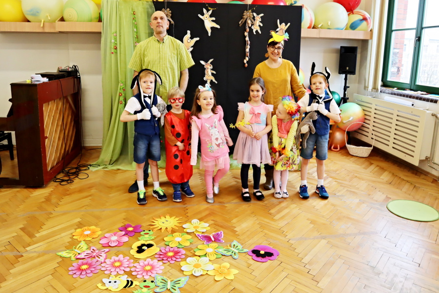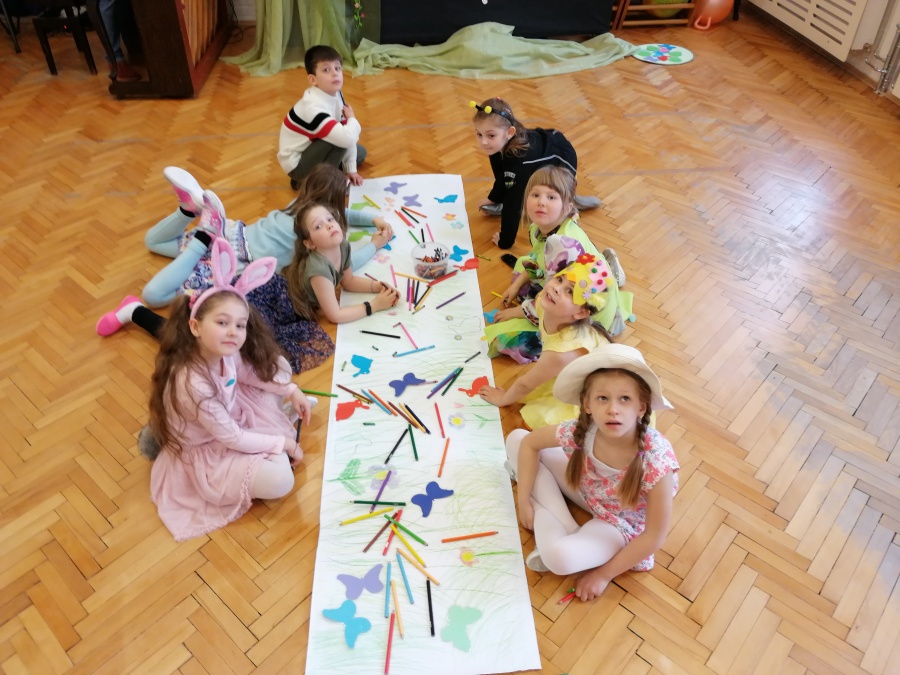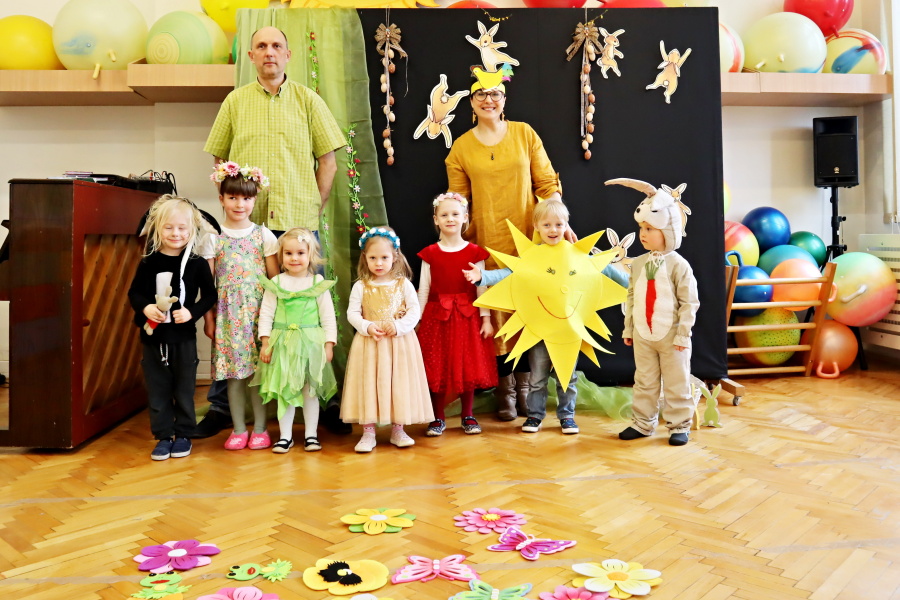 W naszej Pracowni wyrosła trawa, rozkwitły pąki na drzewach i kwiaty w ogrodzie. Zawitały do nas zające, żabki, motyle. W tak pięknych okolicznościach przyrody spotkaliśmy się by wspólnie pośpiewać, potańczyć i twórczo powitać budzącą się do życia wiosnę. W programie był: