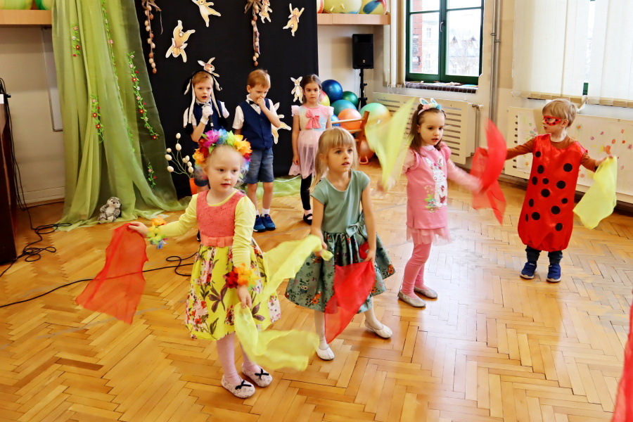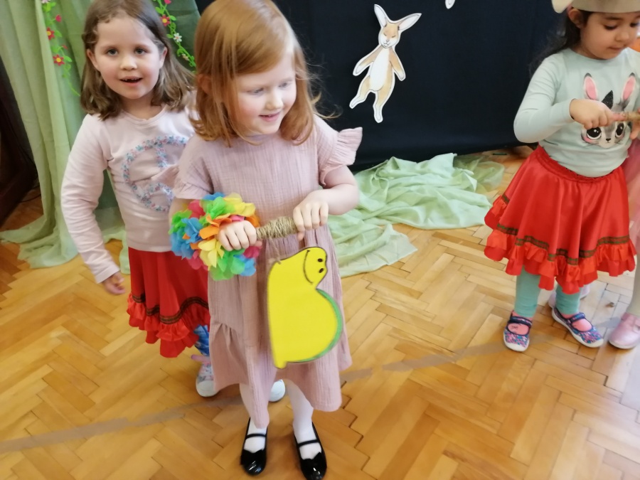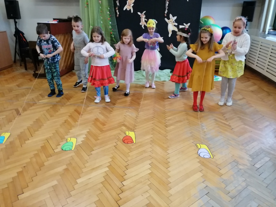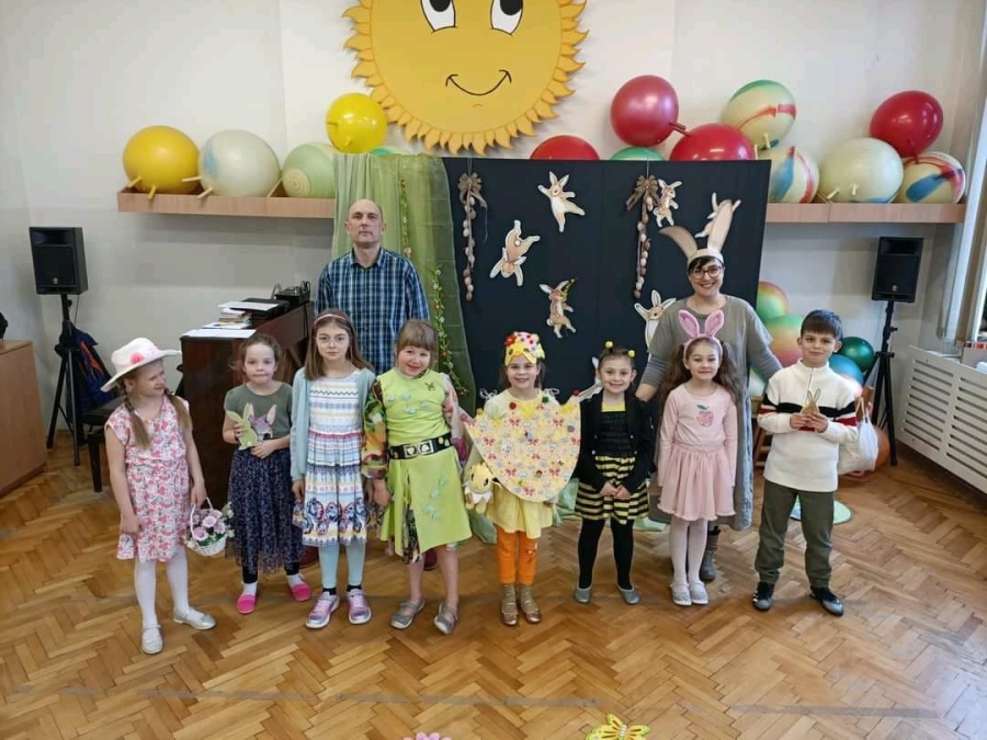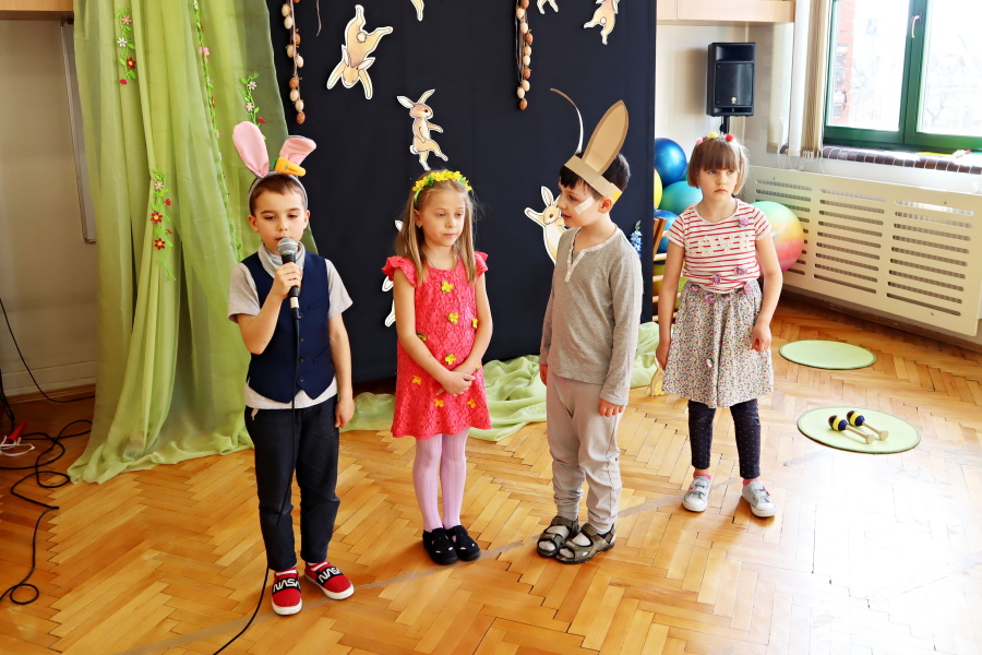 W naszej Pracowni wyrosła trawa, rozkwitły pąki na drzewach i kwiaty w ogrodzie. Zawitały do nas zające, żabki, motyle. W tak pięknych okolicznościach przyrody spotkaliśmy się by wspólnie pośpiewać, potańczyć i twórczo powitać budzącą się do życia wiosnę. W programie był: