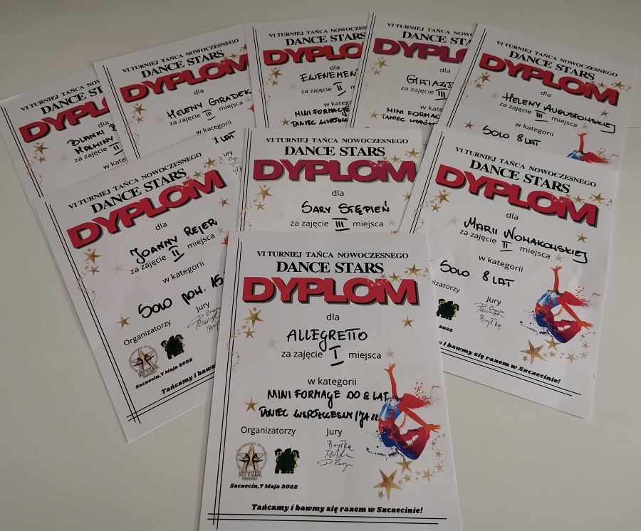 Osiągnięcia turniejowe: Allegretto – I miejsce, Ewenement – II miejsce, Gwiazdeczki – III miejsce