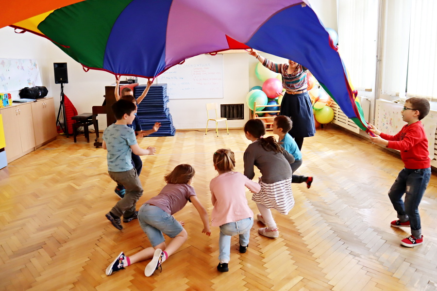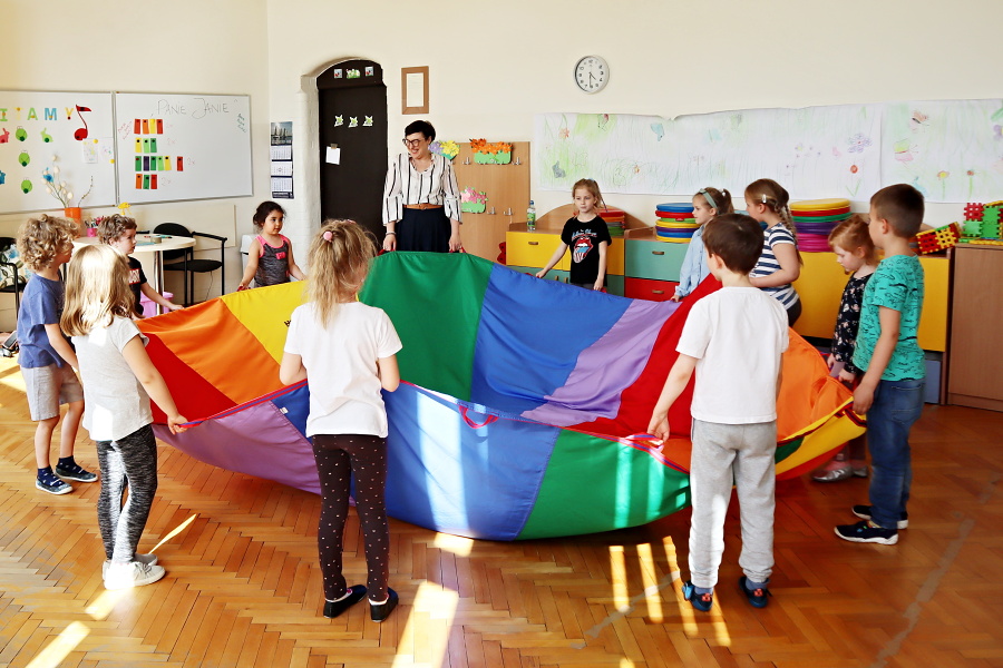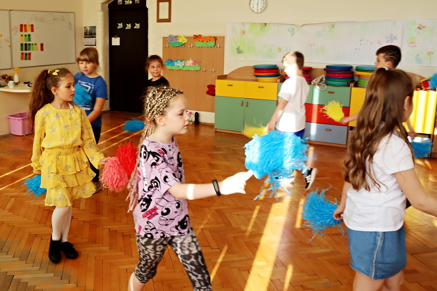 Maj oddaje nam skradzione przez zimę barwy. Dlatego kolejne spotkanie z Elmerem eksplodowało kolorami! Tym razem realizując Projekt WYCHOWANIE PRZEZ CZYTANIE, uczestnicy Pracowni Rozwoju Muzyczno-Ruchowego wysłuchali opowiadania pt. „Elmer i tęcza”. Tradycyjnie, po prezentacji w sali mulimedialnej i rozmowie o przeżyciach związanych z tekstem, przyszedł czas na zabawy aktywizujące, twórcze, ruchowe i muzyczne. Pomogła nam w tym bajecznie kolorowa chusta Klanzy, boom- boom rurki, kolorowy sensoryczny tor rozwijający motorykę dużą oraz piosenka o Tęczy.