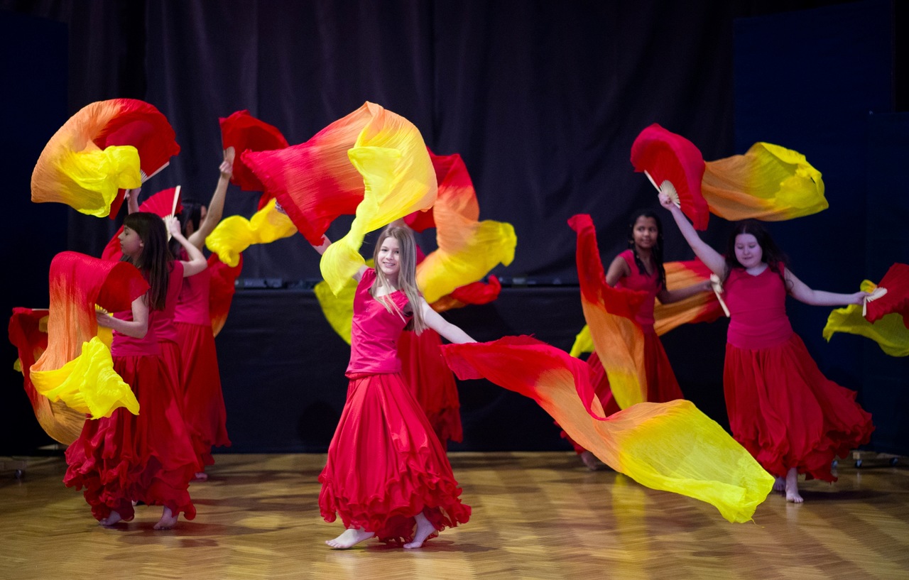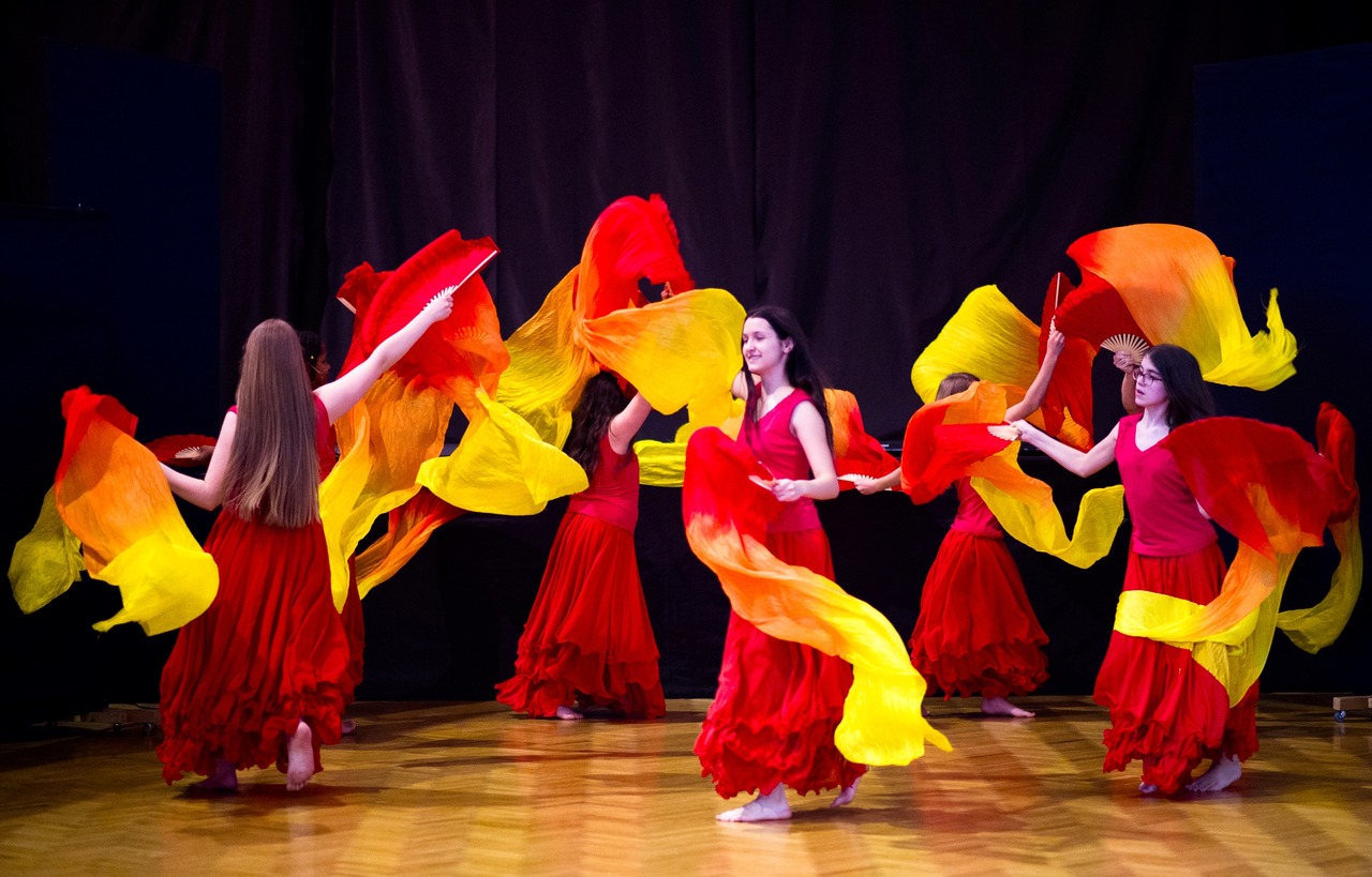 Dziewczęta grupy Mała Etna zatańczyły z ognistymi wachlarzowoalami.