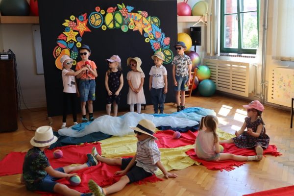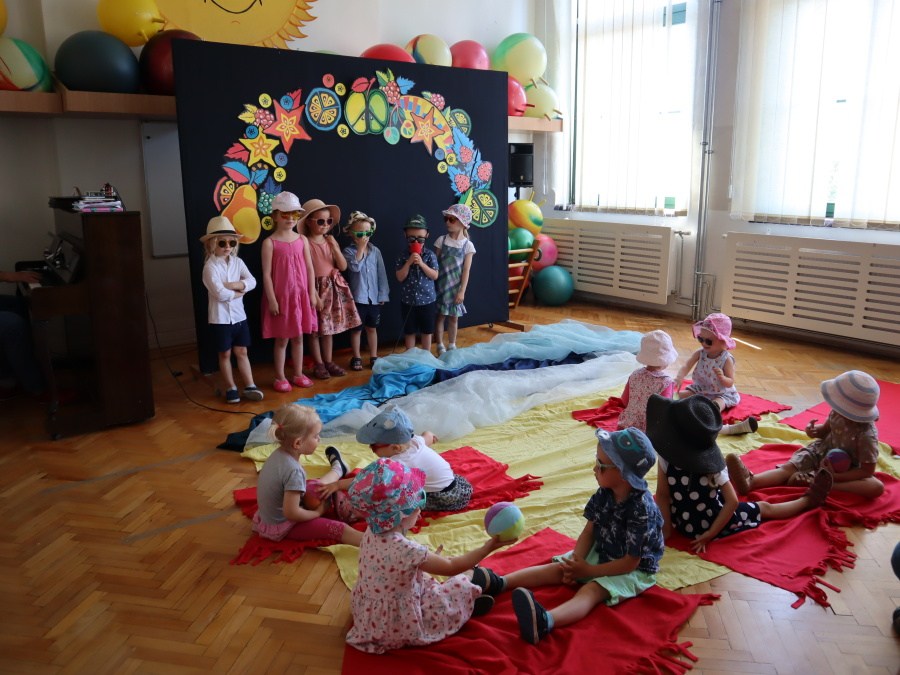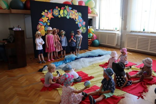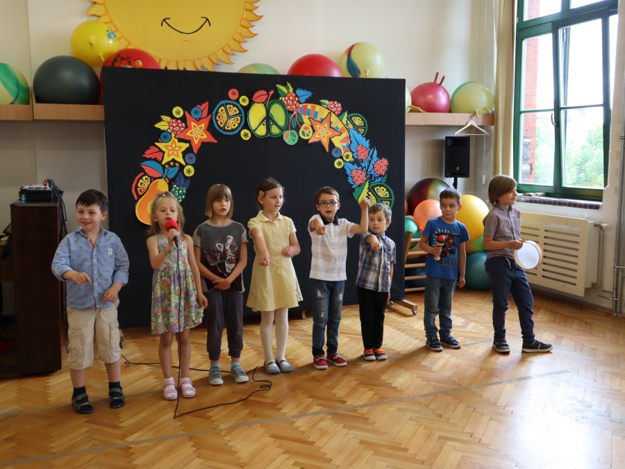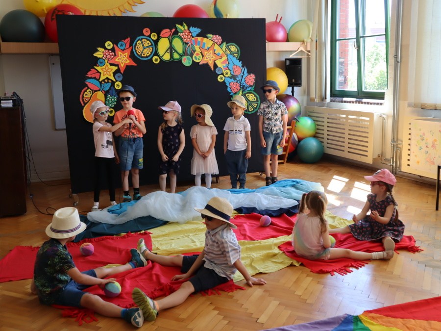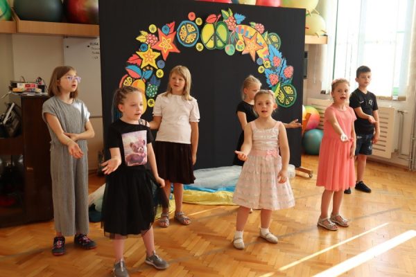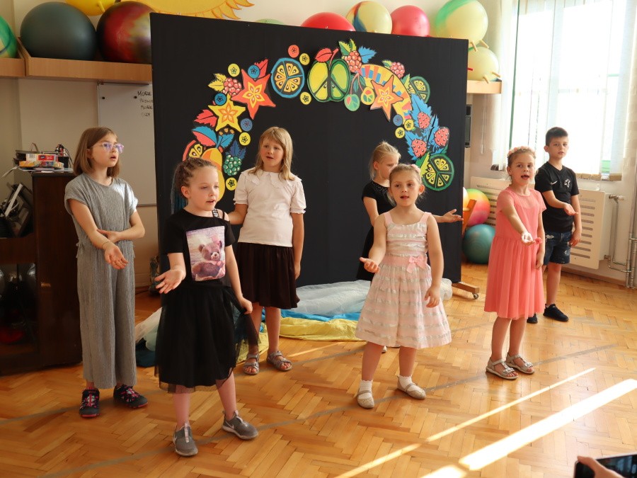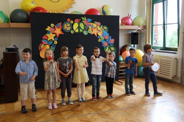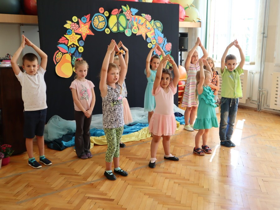 Nie mogło być inaczej! Nasze spotkania pełne energii i muzyki zakończyliśmy w tym roku szkolnym razem z Kolorowym Słoniem. Pokazaliśmy rodzicom, jak wyglądał PROJEKT WYCHOWANIE PRZEZ CZYTANIE „od kuchni”. Był czas na prezentacje artystyczną, zabawy aktywizujące, grę na booom boom rurach oraz wspólny taniec. Dzieci zostały obdarowane MASKOTKĄ ELMERA oraz dyplomem uczestnictwa. Przybył też do nas strój bohatera naszego cyklu.