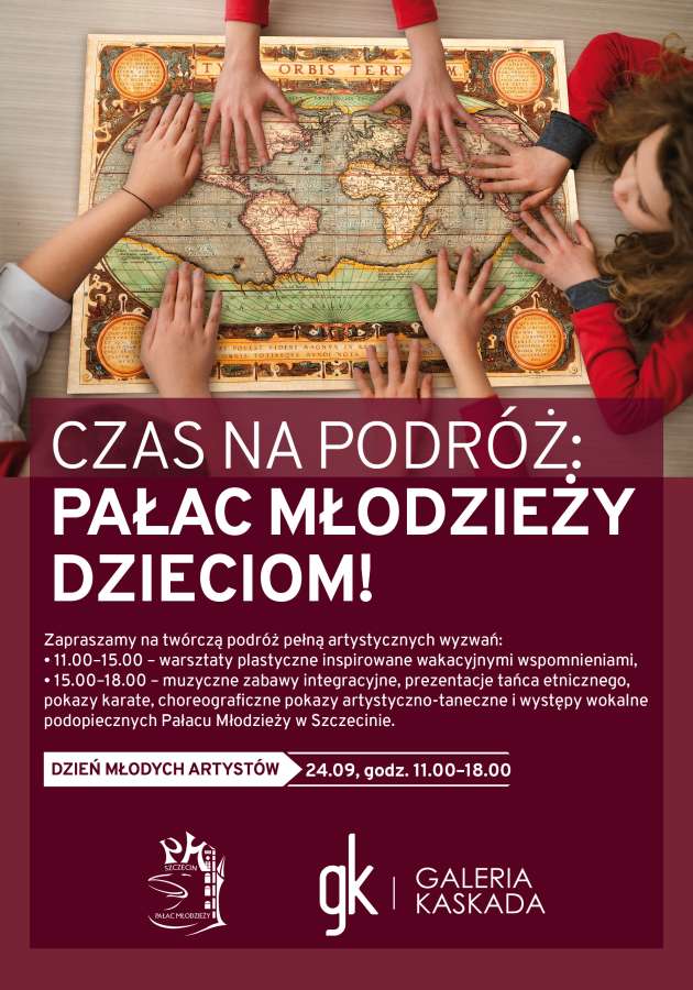 W sobotę, 24 września zapraszamy na spotkanie z nauczycielami i podopiecznymi szczecińskiego Pałacu Młodzieży. Młodzi artyści przeniosą Was do świata, w którym dużo się gra, śpiewa, tańczy i… ćwiczy! A wszystko po to, aby choć na chwilę przywołać wakacyjne wspomnienia. Spodziewajcie się choreograficznych pokazów artystyczno- tanecznych, występów wokalnych oraz pokazów karate. A do tego każdy będzie mógł wziąć udział w warsztatach plastycznych oraz muzycznych zabawach integracyjnych.