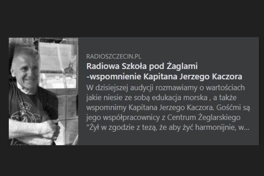 Wspomnienie Kapitana Jerzego Kaczora w Radiu Szczecin Pałac Młodzieży Opublikowano w 5 października, 2022 o 13:56 przez Dział Organizacyjny- Monika5 października, 2022 o 13:56 … [Czytaj dalej…] Wspomnienie Kapitana Jerzego Kaczora w Radiu Szczecin Czytaj dalej →