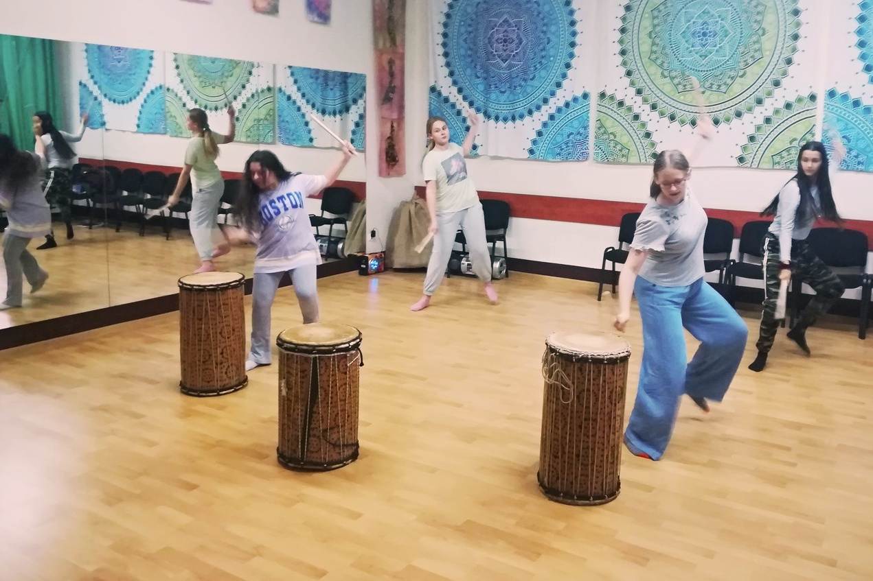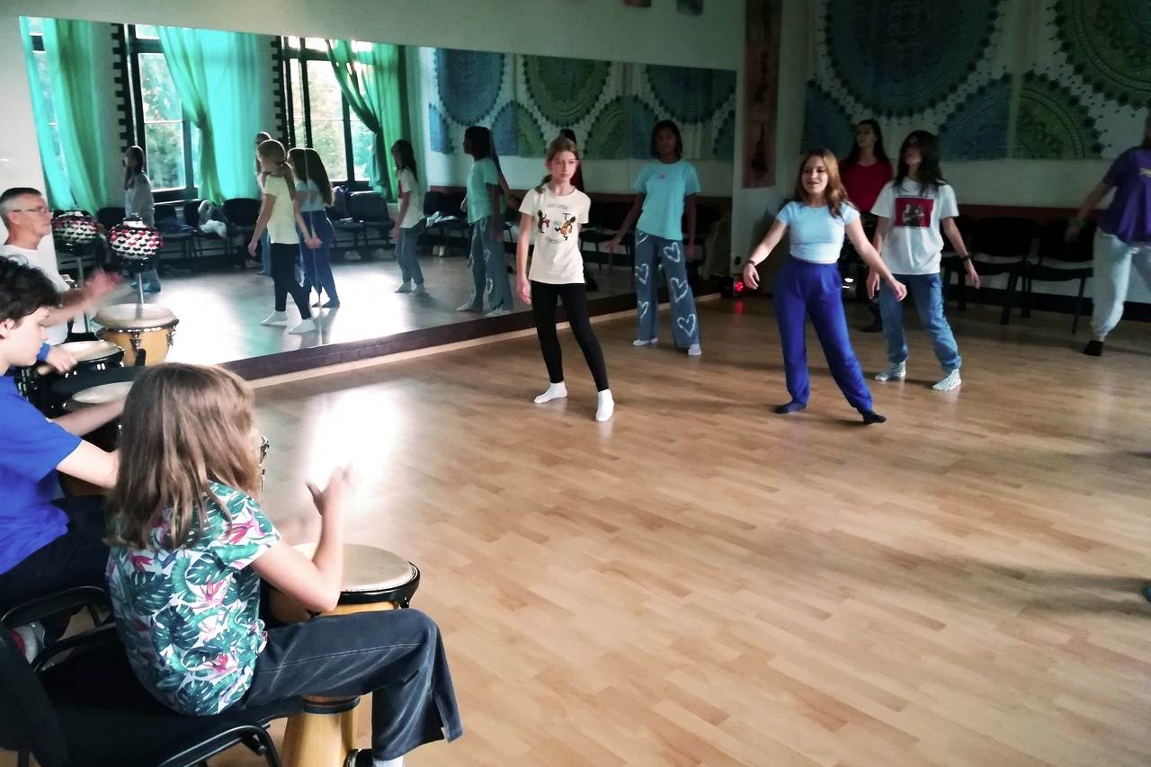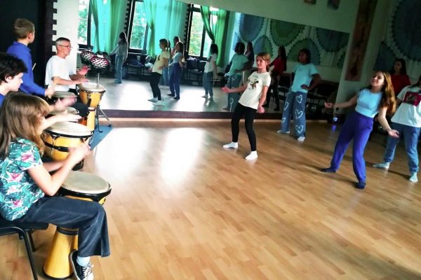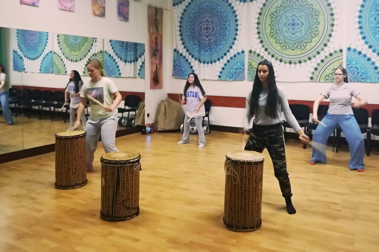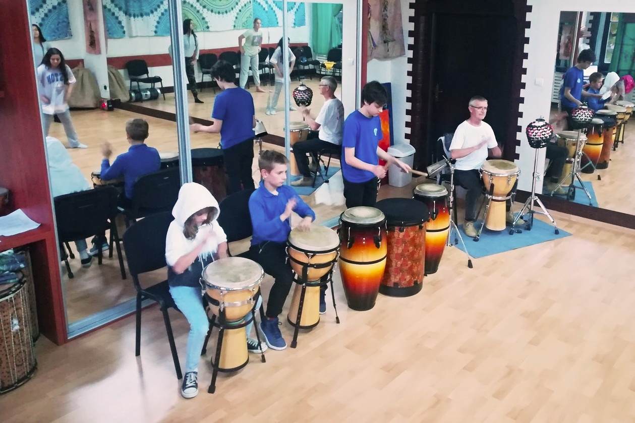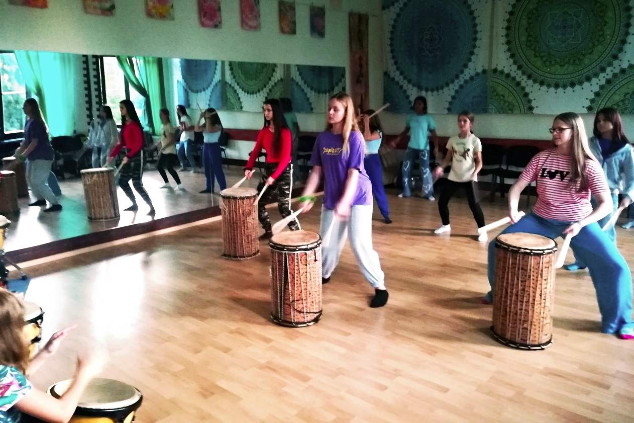 Dzięki tej formie współpracy można nie tylko usłyszeć rdzenne rytmy afrykańskie grane na instrumentach perkusyjnych na żywo, ale również doświadczyć tańca z dun dunami. To bębny, które wykorzystywane są w tradycji afrykańskiej przez tancerki i tancerzy. Tańczyć i grać jednocześnie nie jest łatwo, o czym przekonują się uczestniczki zajęć, ale przyjemność z osiąganych efektów ogromna.