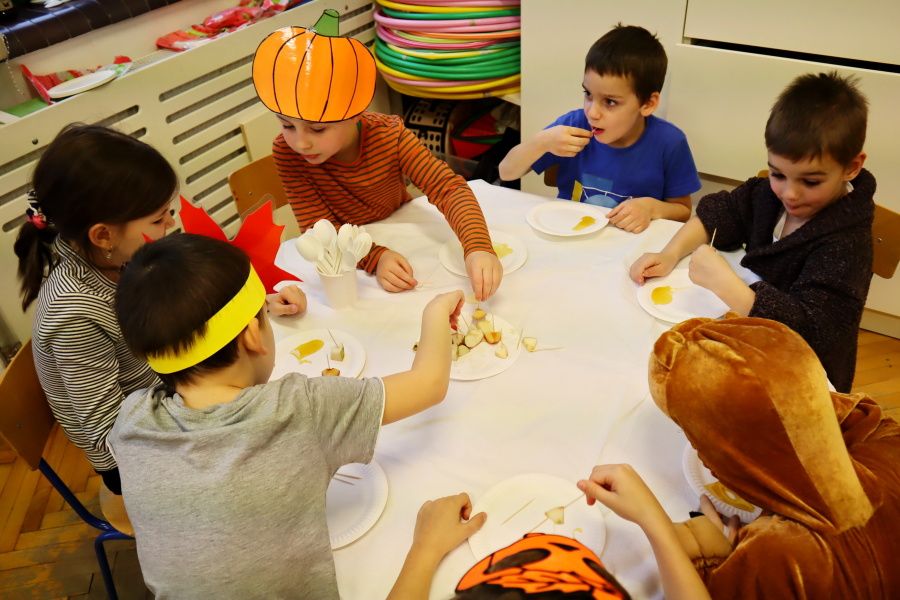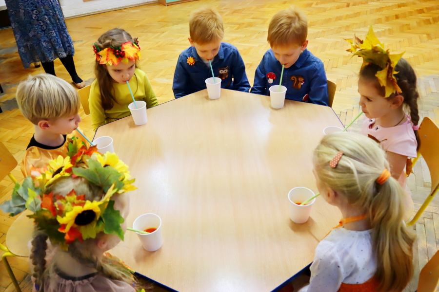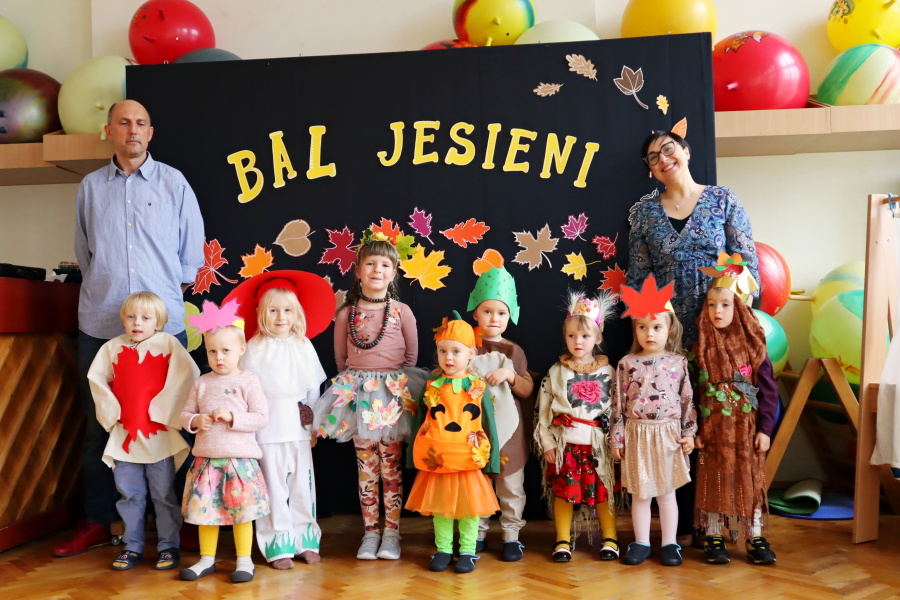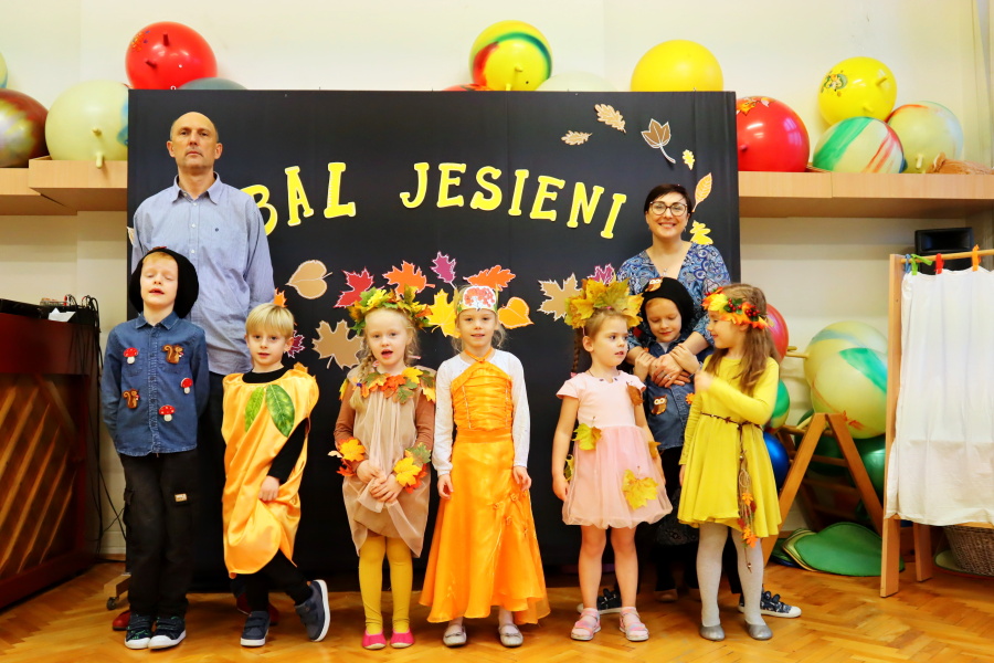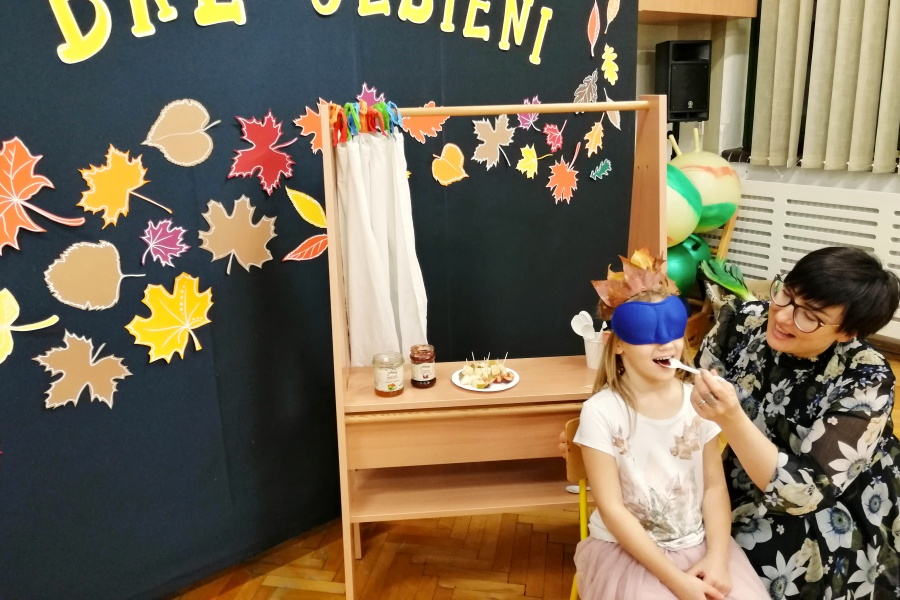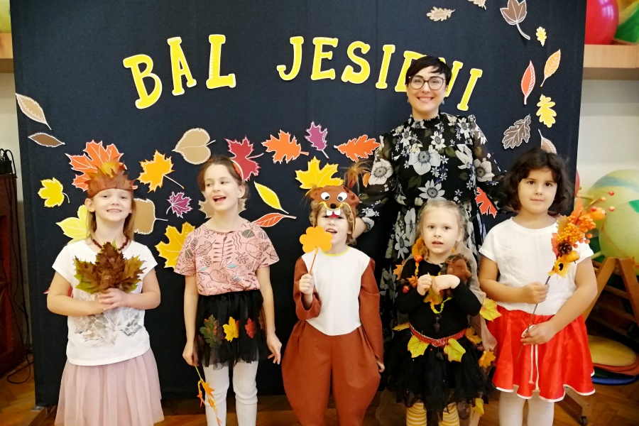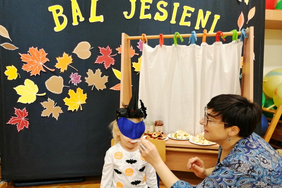 Za oknami naszej Pracowni piękna złota jesień. W tym roku wyjątkowo ciepła. A u nas w sali gorący Jesienny Bal! Uczestnicy przebrani w stroje o tematyce jesiennej pięknie prezentowali się podczas zabaw integracyjnych oraz tańców. Dzieci udowodniły, że są specjalistami w dziedzinie odgadywania warzyw i owoców za pomocą zmysłów dotyku oraz smaku. Najmłodsi uczestnicy doskonalili analizę i syntezę wzrokową podczas jesiennych zagadek. Starsi tworzyli owocowe szaszłyki, które moczone w miodzie i powidłach śliwkowych stanowiły zdrowy, słodki i niezwykle smaczny finał.