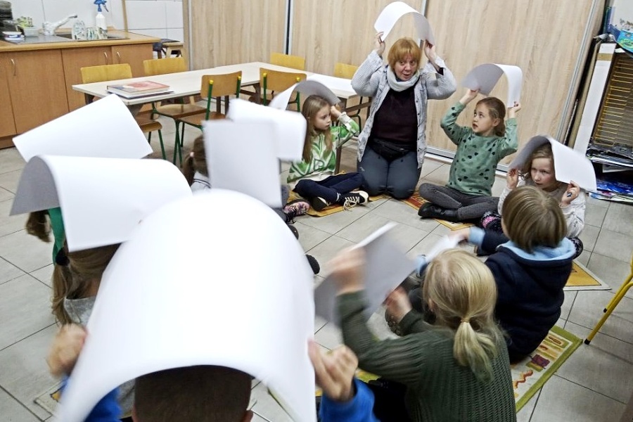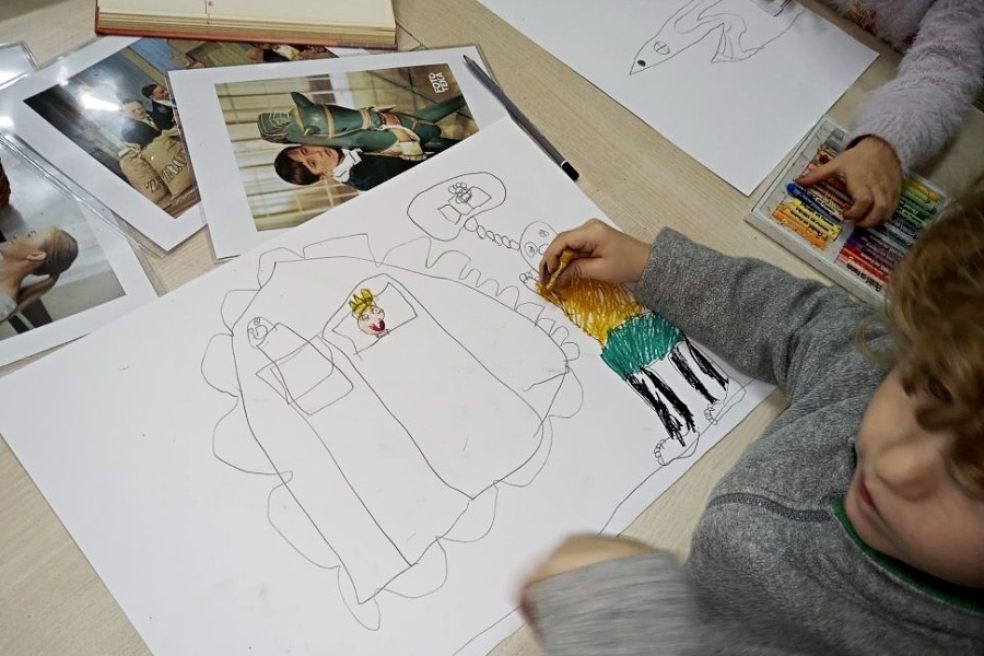 Aby uważniej wczytać się w tekst książki Janusza Korczaka uczestniczki i uczestnicy zajęć plastycznych pracowni Agnieszki Czachorowskiej użyli tajemnych, papierowych czarów. W czasie lektury mieli okazję trenować empatię gdyż mały Maciuś znalazł się w bardzo trudnej sytuacji. Książka dała też okazję do zabawy w „detektywa słów”. Dzieci zrozumiały kim jest minister oraz ambasador. Po lekturze mogły obejrzeć kilka fotosów pochodzących z filmu „Król Maciuś I” z 1954 roku. I przenieść swoje wrażenia na kartki.