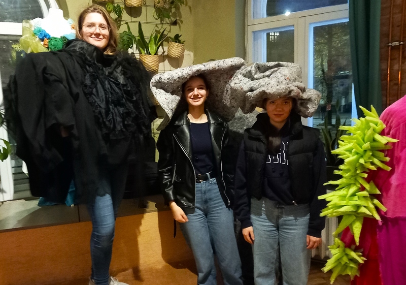 Uczestniczki zajęć obejrzały wyjątkową wystawę ubiorów, okryć pod nazwą ,,Underline”, którą po plenerowym pokazie mody 15.10.2022 wystawiono w Domu Skandynawskim. O tym projekcie opowiadała sama Mistrzyni, a towarzyszyły jej również pozostałe Twórczynie. Była to okazja do poznania kulisów powstawania każdego ubioru i jego przymierzenia.