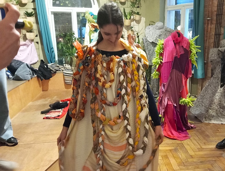 Ekologia i nadmierny konsumpcjonizm stały się tematem przewodnim tego spotkania. Pani Renata zwracała dużą uwagę na różne możliwości tworzenia nowego ze starego. Pokazała, że wszystko da się wykorzystać i każdej tkaninie można nadać inną, niepowtarzalną, intrygującą i ciekawą formę. Artystka wspominała również o swoim innym, bardzo ciekawym projekcie pod tytułem: ,,Jutro. Tkaniny z użyciem nasion”. Za tę pracę otrzymała w Łodzi, podczas czwartej edycji międzynarodowego konkursu nagrodę Ministerstwa Kultury i Dziedzictwa Narodowego.