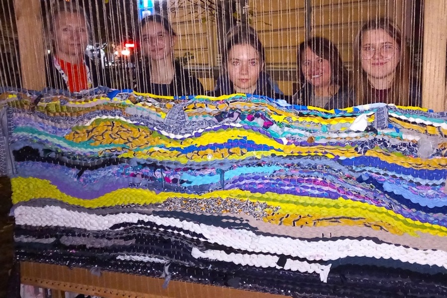 W piątkowy wieczór grupa dziewcząt z Pracowni Tańca Etnicznego pod kierunkiem artystycznym Justyny Kozłowskiej, uczestniczyła w warsztatach tkactwa partycypacyjnego z p. Renatą Ramolą. Były one częścią wydarzeń Festiwalu Tkaniny, który w dniach 24.09 – 30.10.2022 odbywał się w Szczecinie.